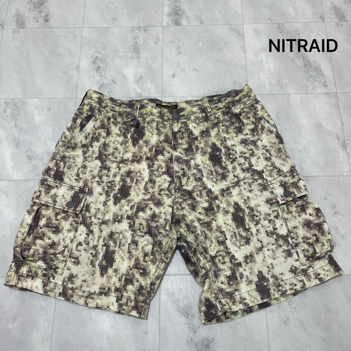 NITRAID ナイトレイド ナイトロウ ハーフパンツ ショートパンツ カーゴショーツ カモフラ モザイク ストリート ヒップホップ グリーン サイズXL 玉SS4050