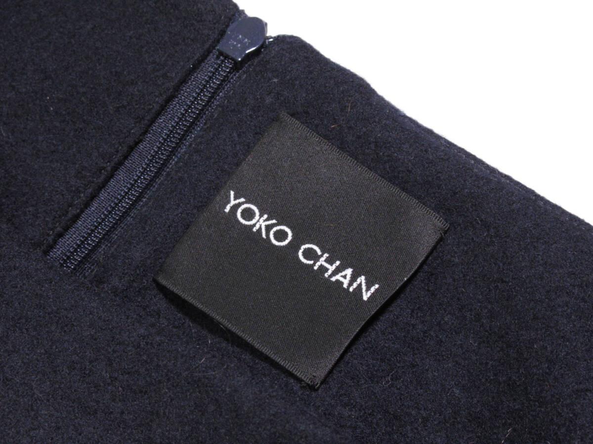 ヨーコチャン ワンピース サイズ表記:FREE お色:濃紺 素材:表地 毛100% 裏地 キュプラ100% 平置き実寸: 身幅43 着丈79cm位 バックファスナー。 |