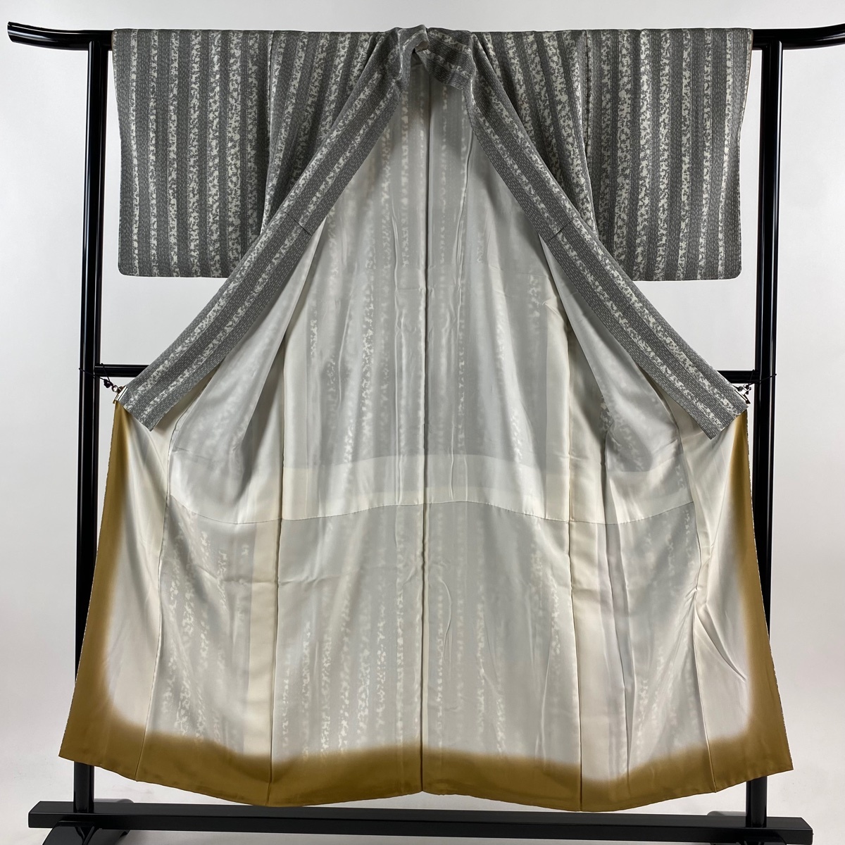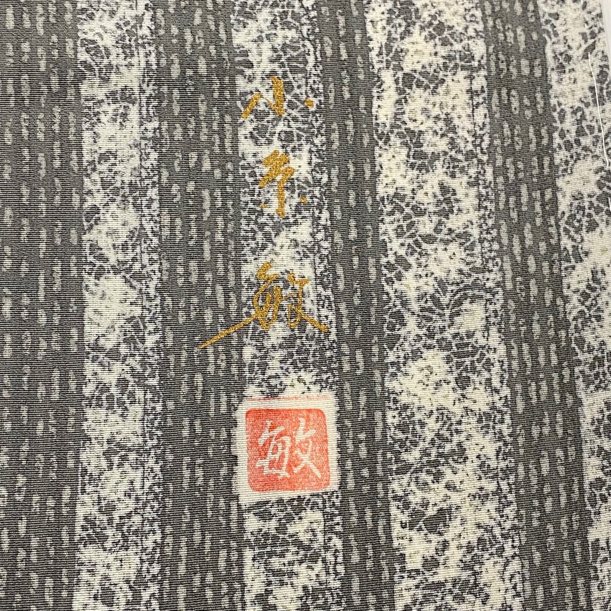 | 小紋 名品 小糸敏 落款 縞 幾何学 灰色 袷 身丈152.5 裄丈61 S 正絹 【中古】 |