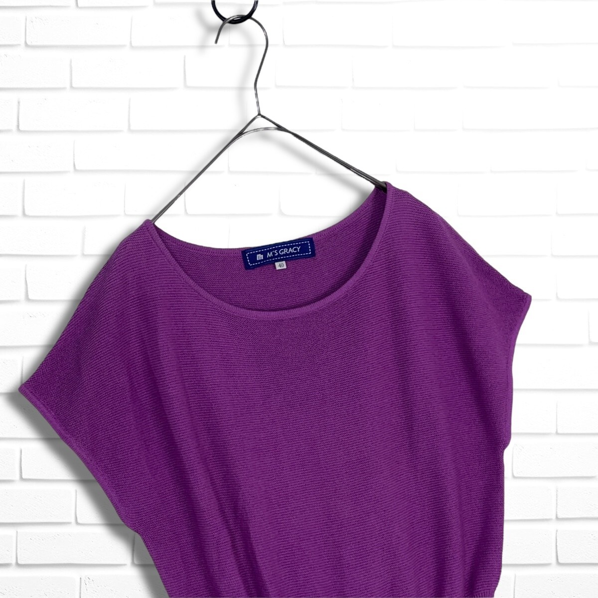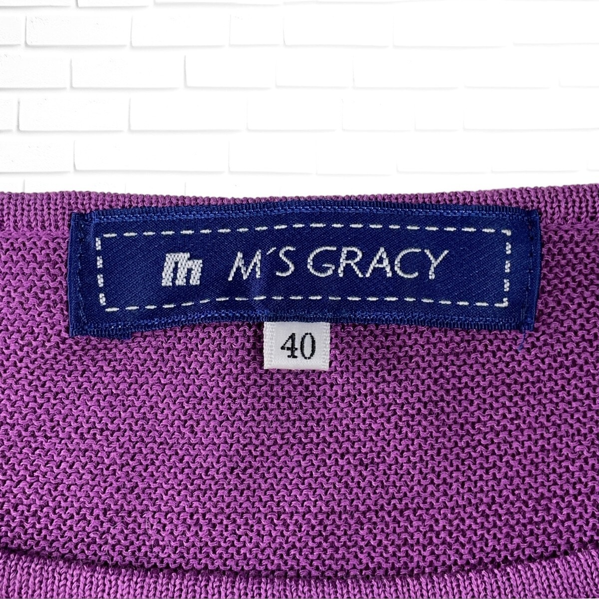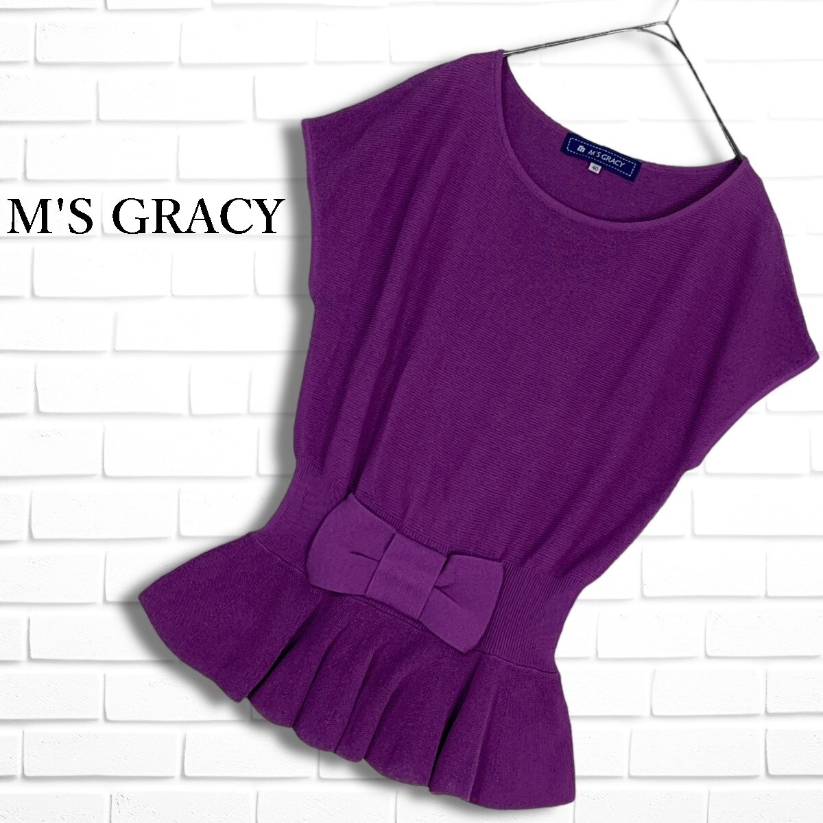 ◆美品◆ M'S GRACY エムズグレイシー リボン コットン サマーニット ノースリーブ トップス 紫 パープル レディース 40 送料無料 0565H◎