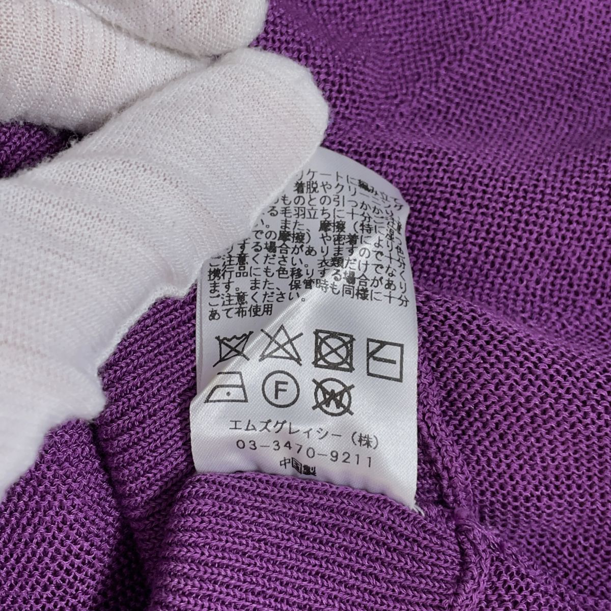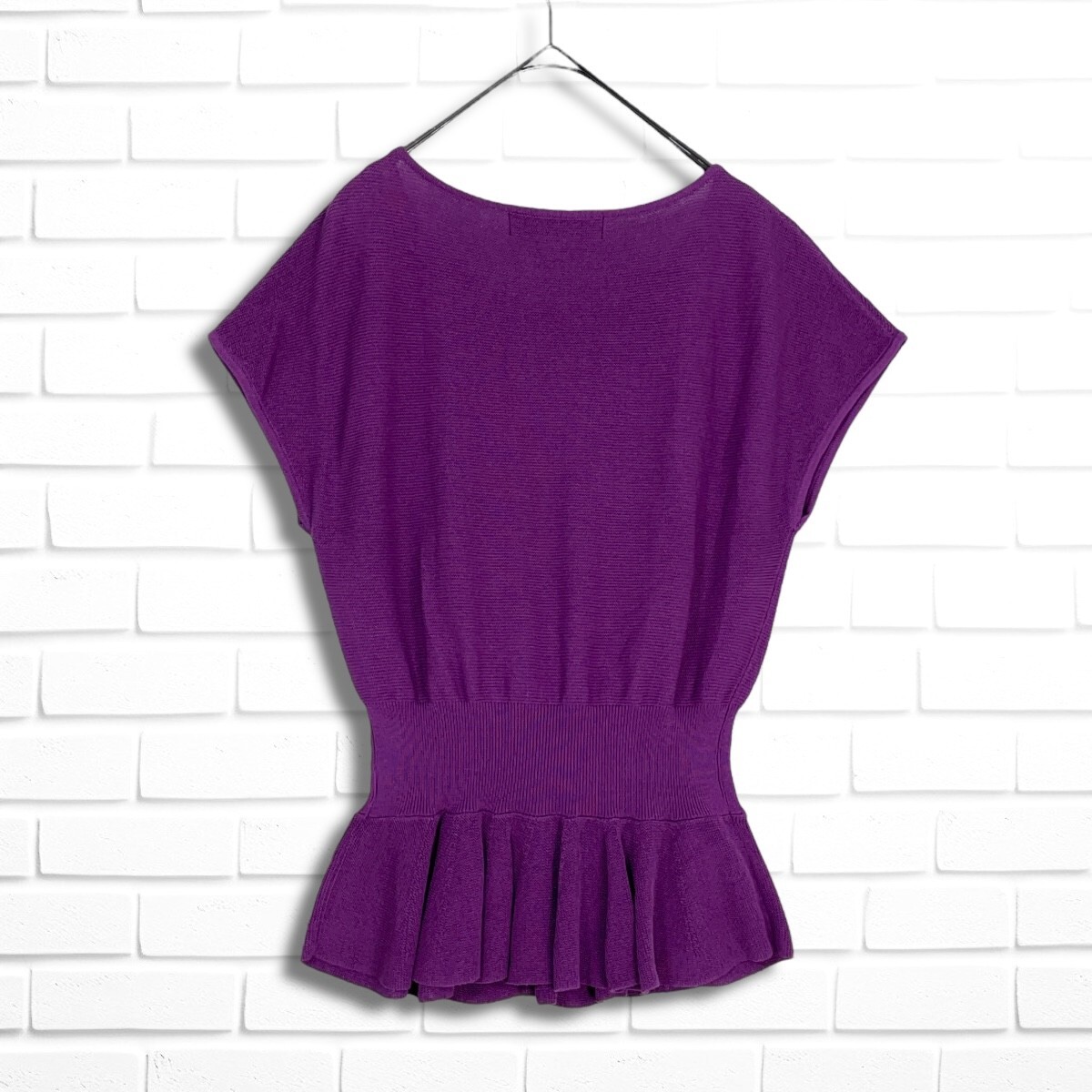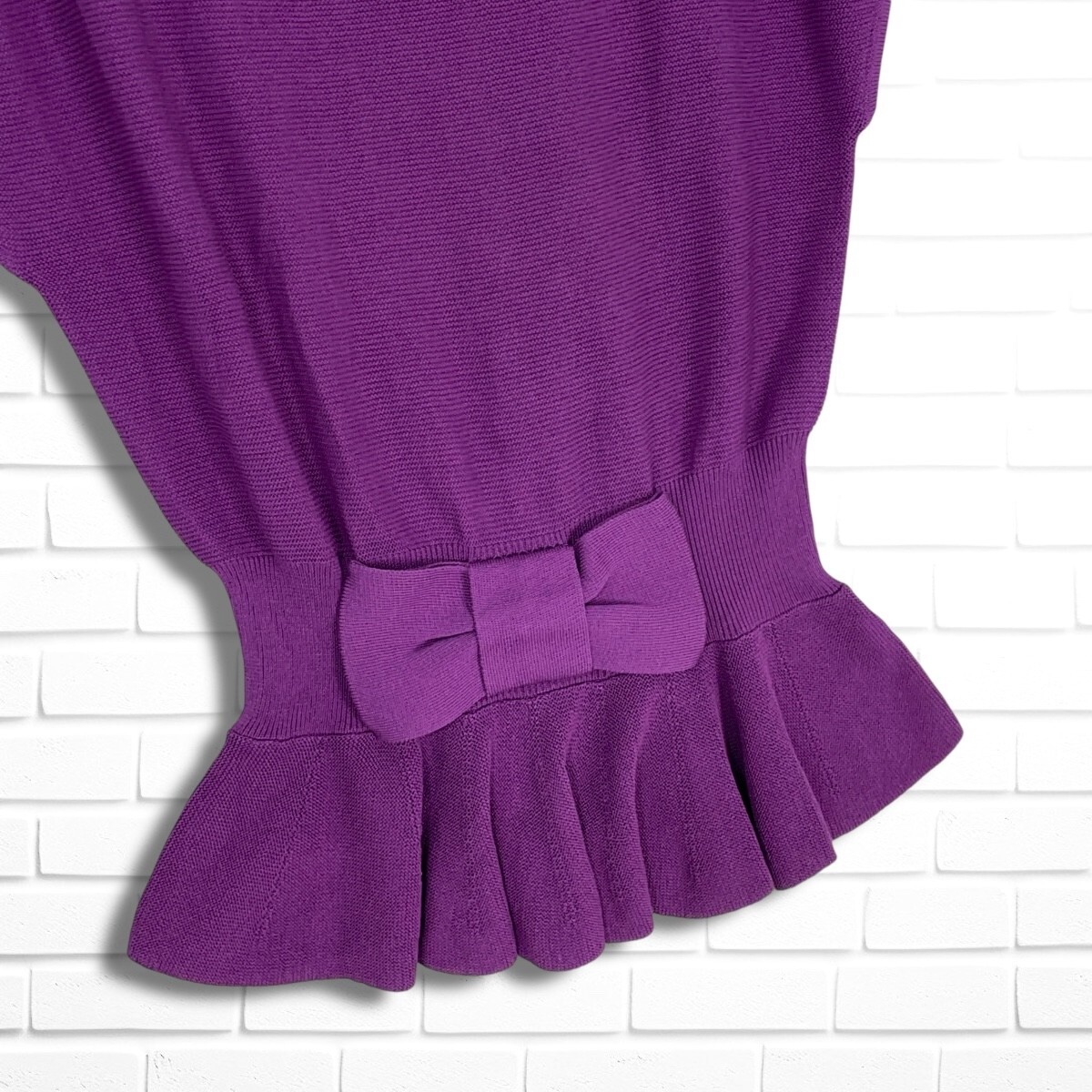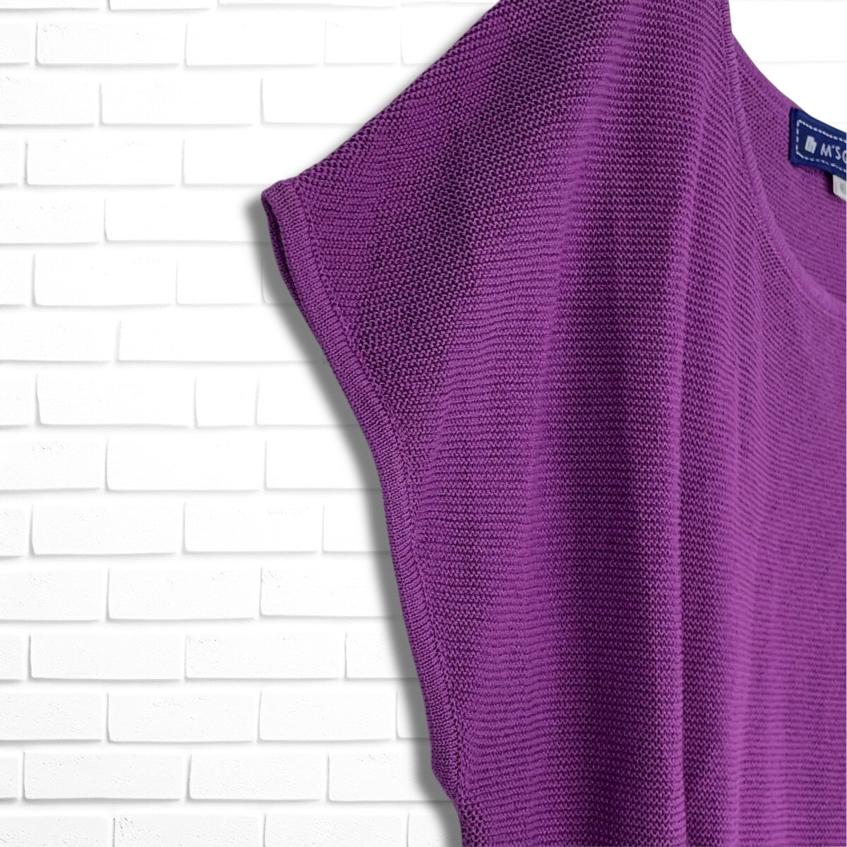 ◆美品◆ M'S GRACY エムズグレイシー リボン コットン サマーニット ノースリーブ トップス 紫 パープル レディース 40 ◆送料無料◆ 0565H◎
