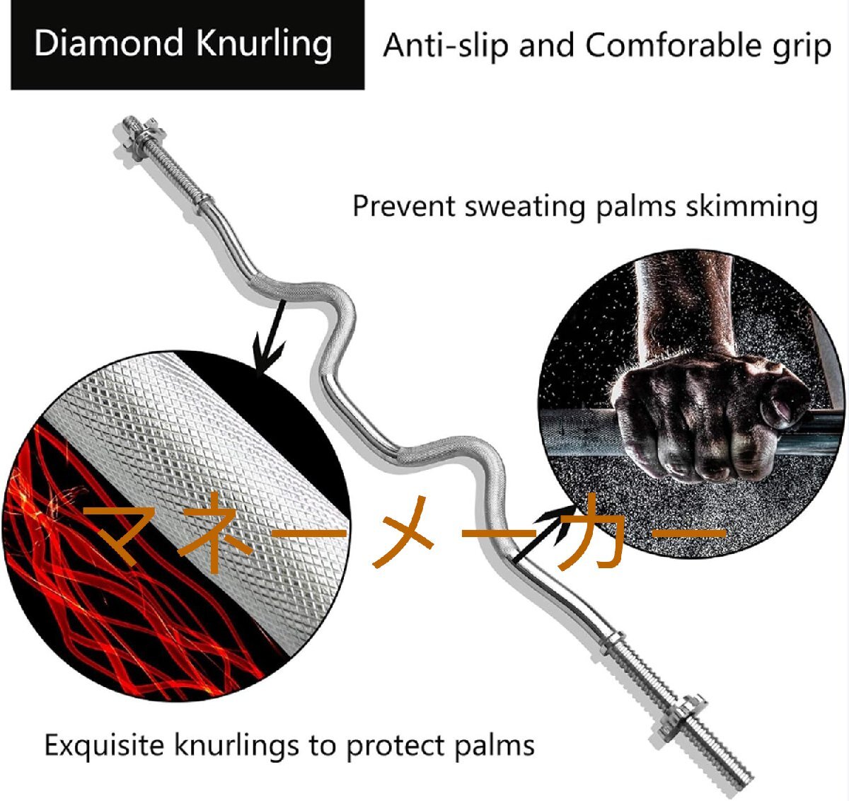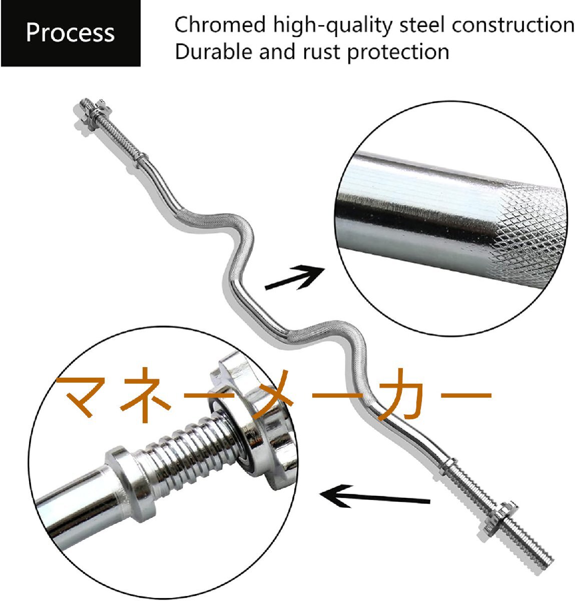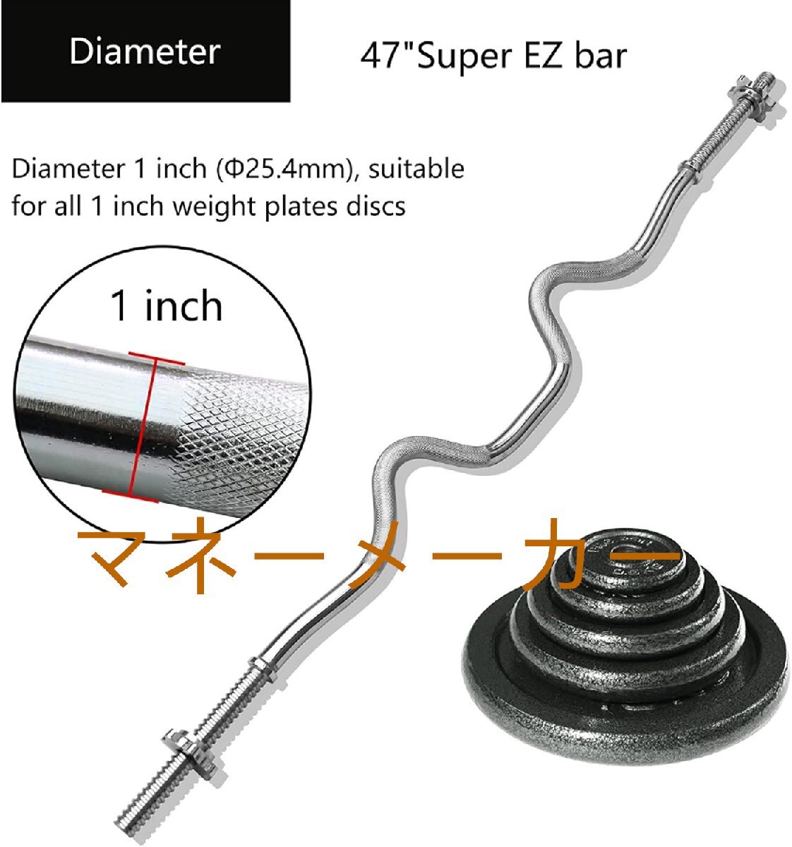 オリンピックスーパーカールバー 径25mm、120cm EZバー Wバー Wシャフト バーベル 筋トレ、クロム ダンベルシャフト、トレーニング器具カ