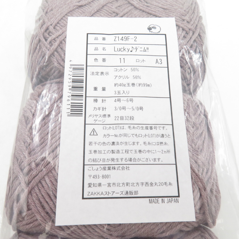 | 毛糸 毛糸ZAKKAストアーズ Lucky(ラッキー)♪デニム 9玉セット 11番色 1玉40g 約99m 合太 日本製 春夏毛糸 パープル 未使用品 |