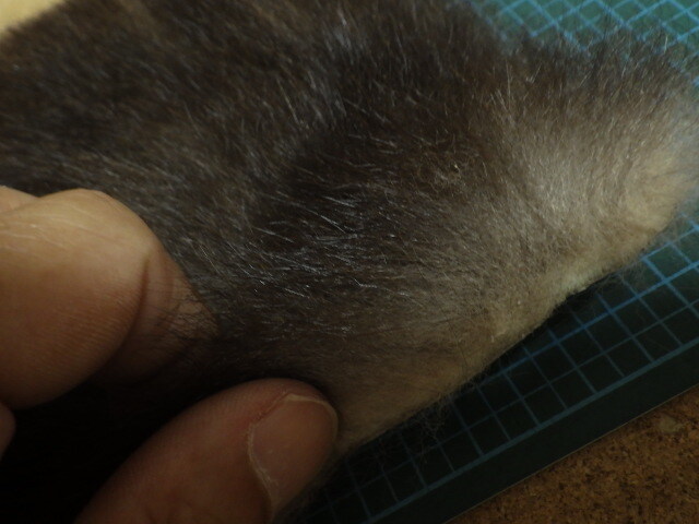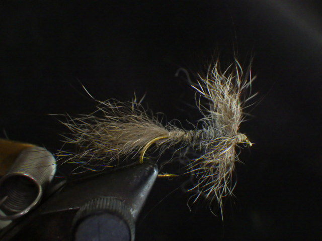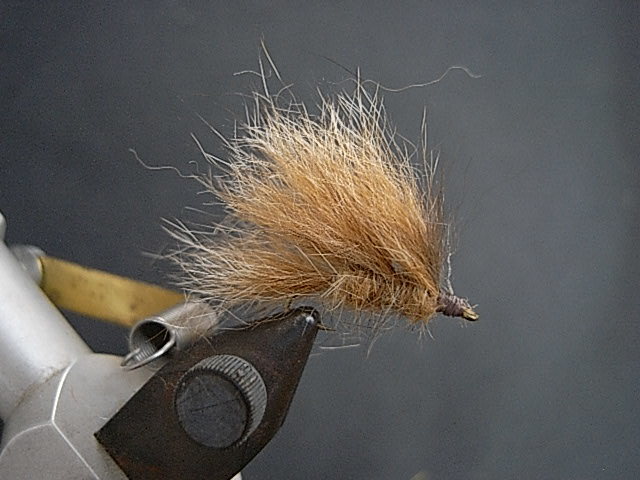 画像5は参考画像、ファーハックルとして。ヘアがチリチリしていますので、ハックルみたいに使えます。グレーポッサム使用。