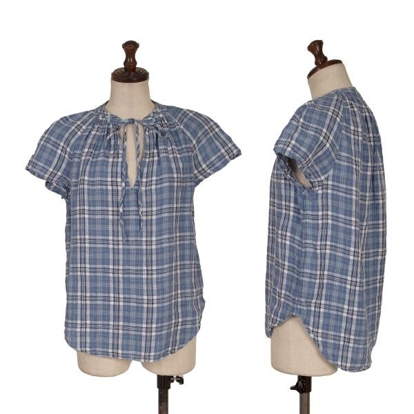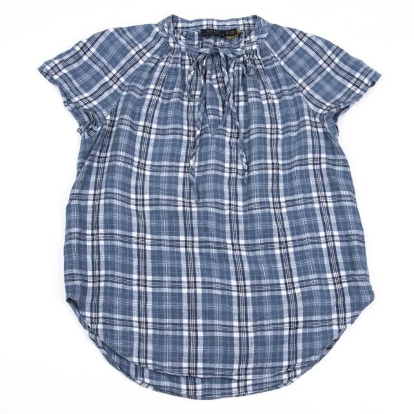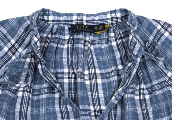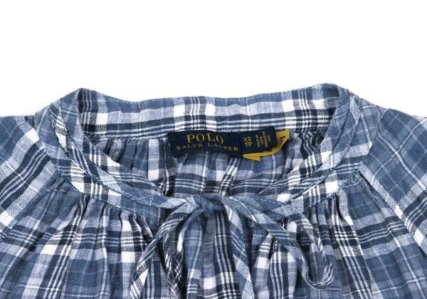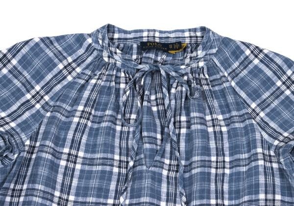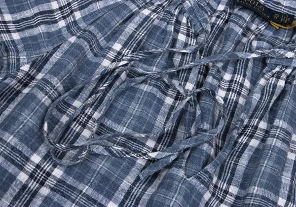 ポロラルフローレンPOLO RALPH LAUREN リネンストラップスキッパーチェックブラウス 水色白他XS |