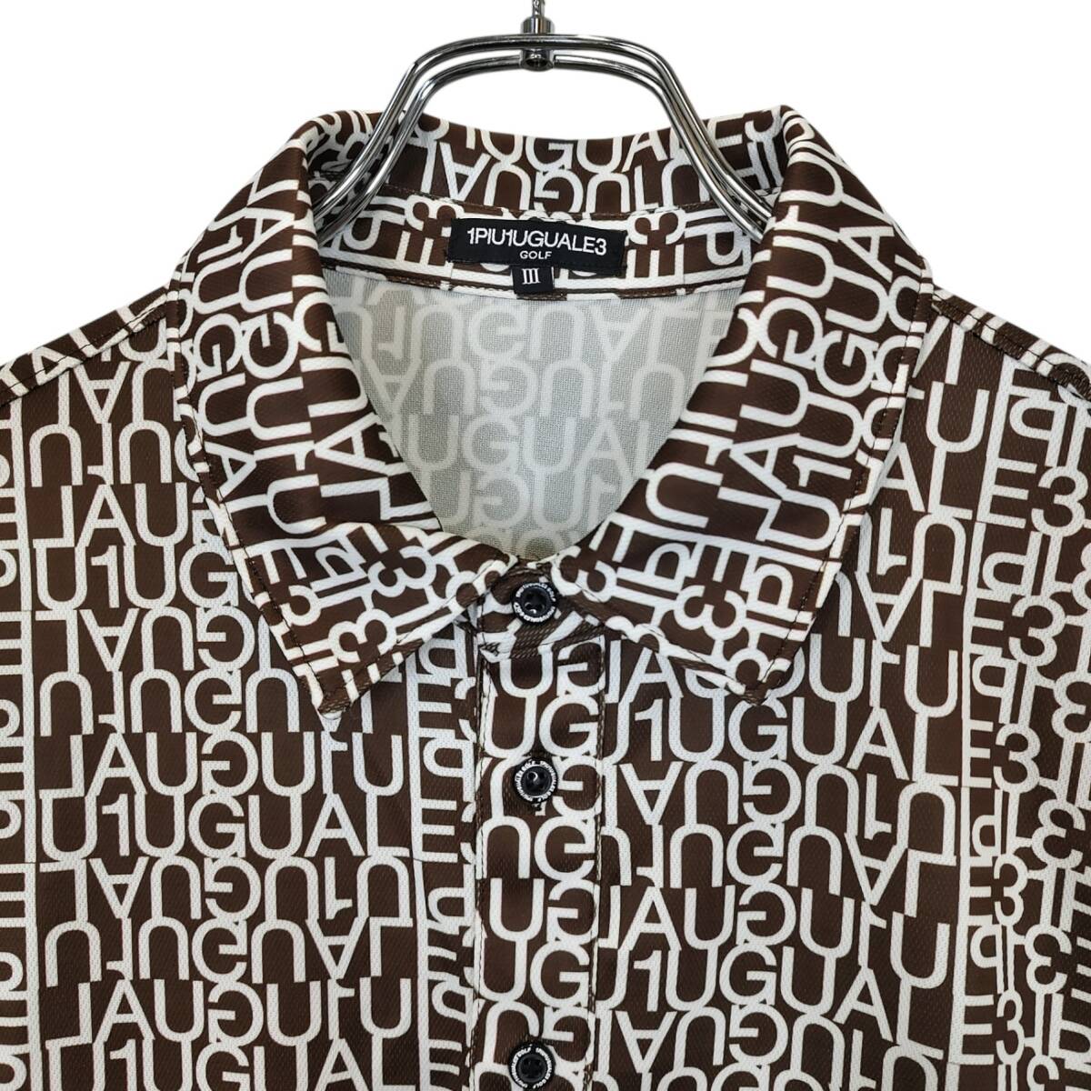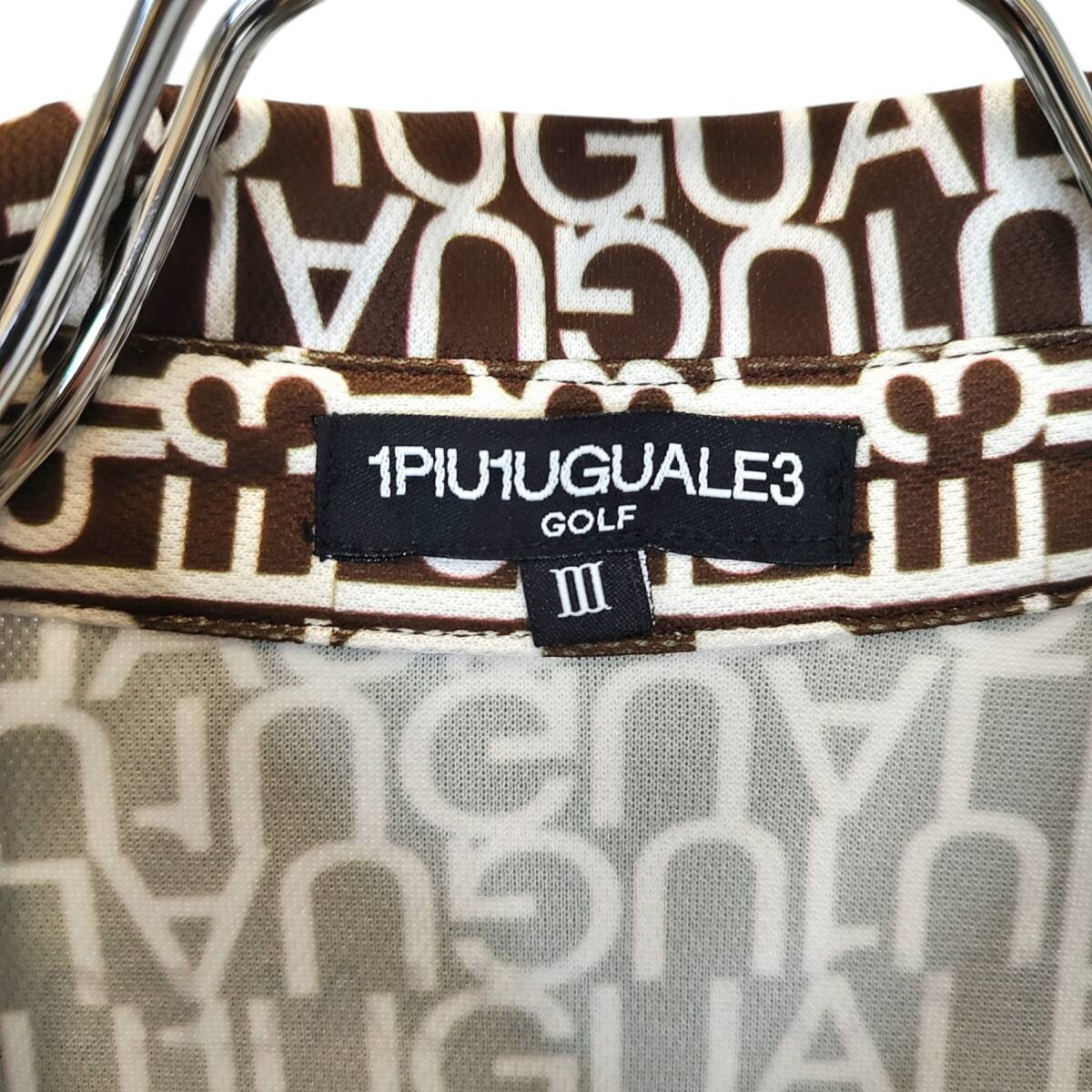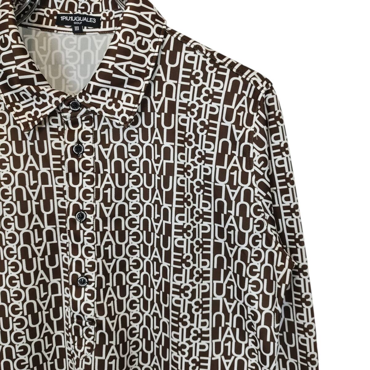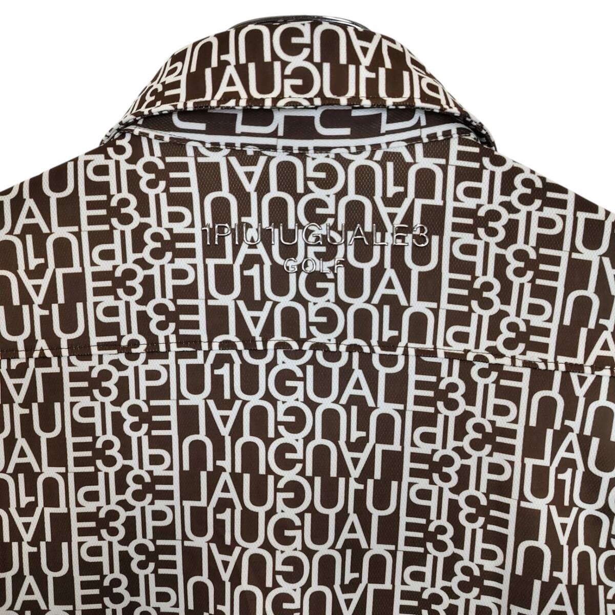 1PIU1UGUALE3 GOLF ウノピゥウノウグァーレトレ ゴルフ FULL LOGO L/S POLO 総柄 長袖 ポロシャツ MRT188 POE078 3 ブラウン/ホワイト