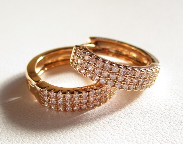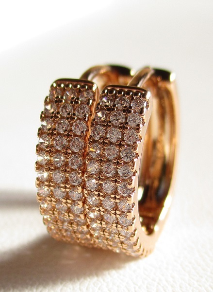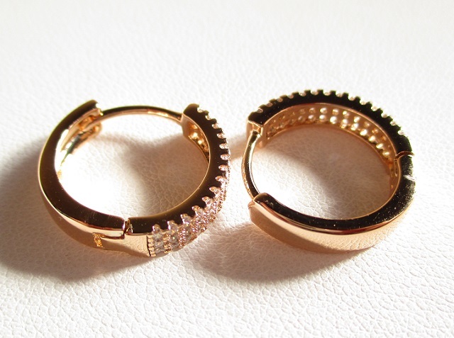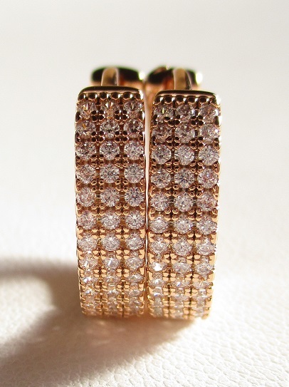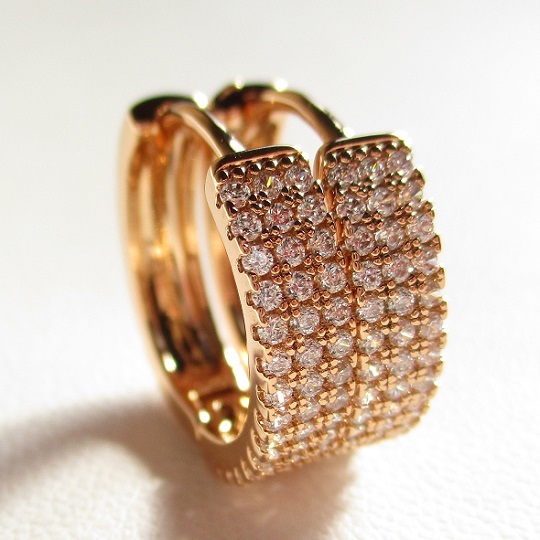 複雑なカットで美しい煌めきを放つキュービックジルコニアのフープピアスになります。吸い込まれるようなクリアな輝きはグレードの高いダイヤモンドに匹敵する魅力があります。