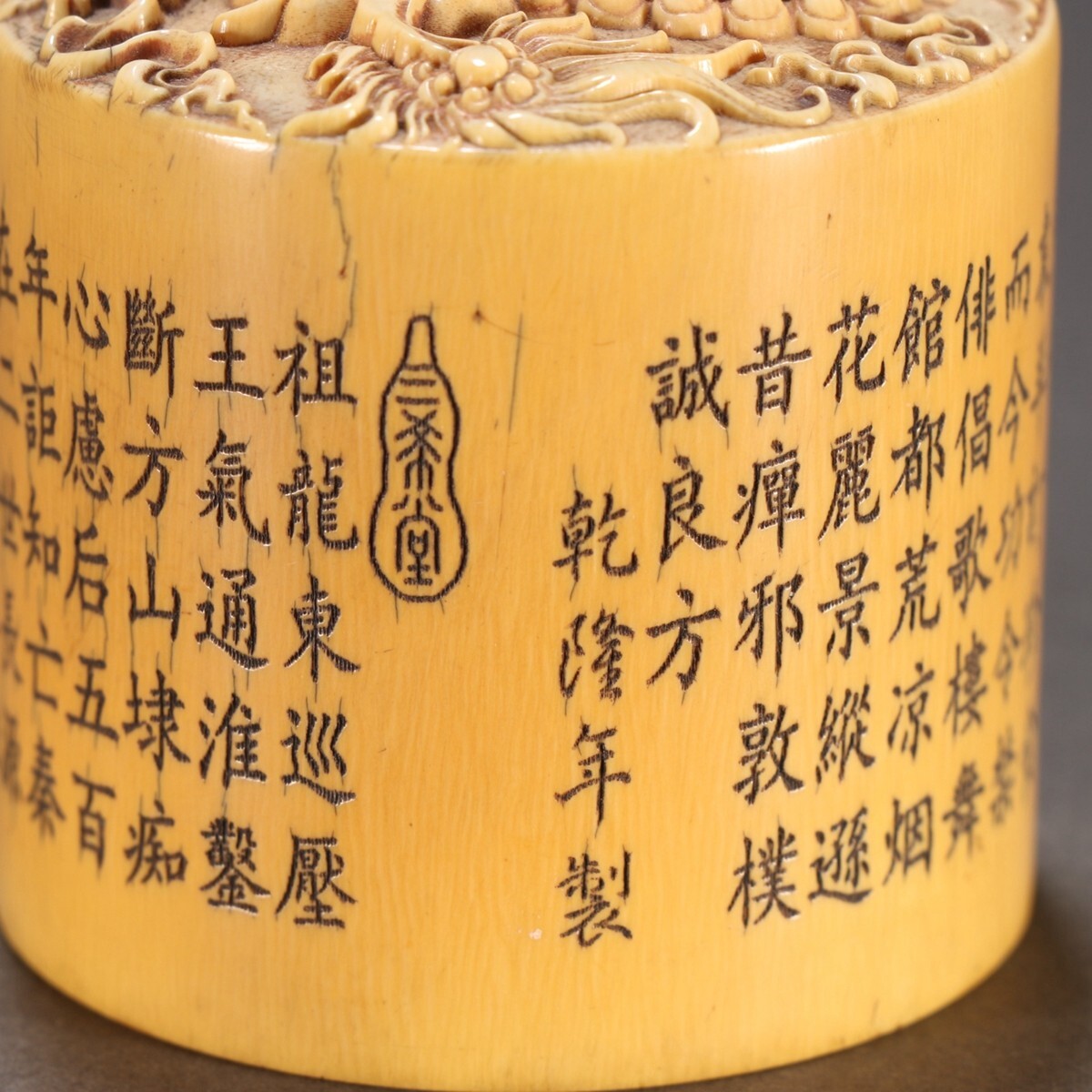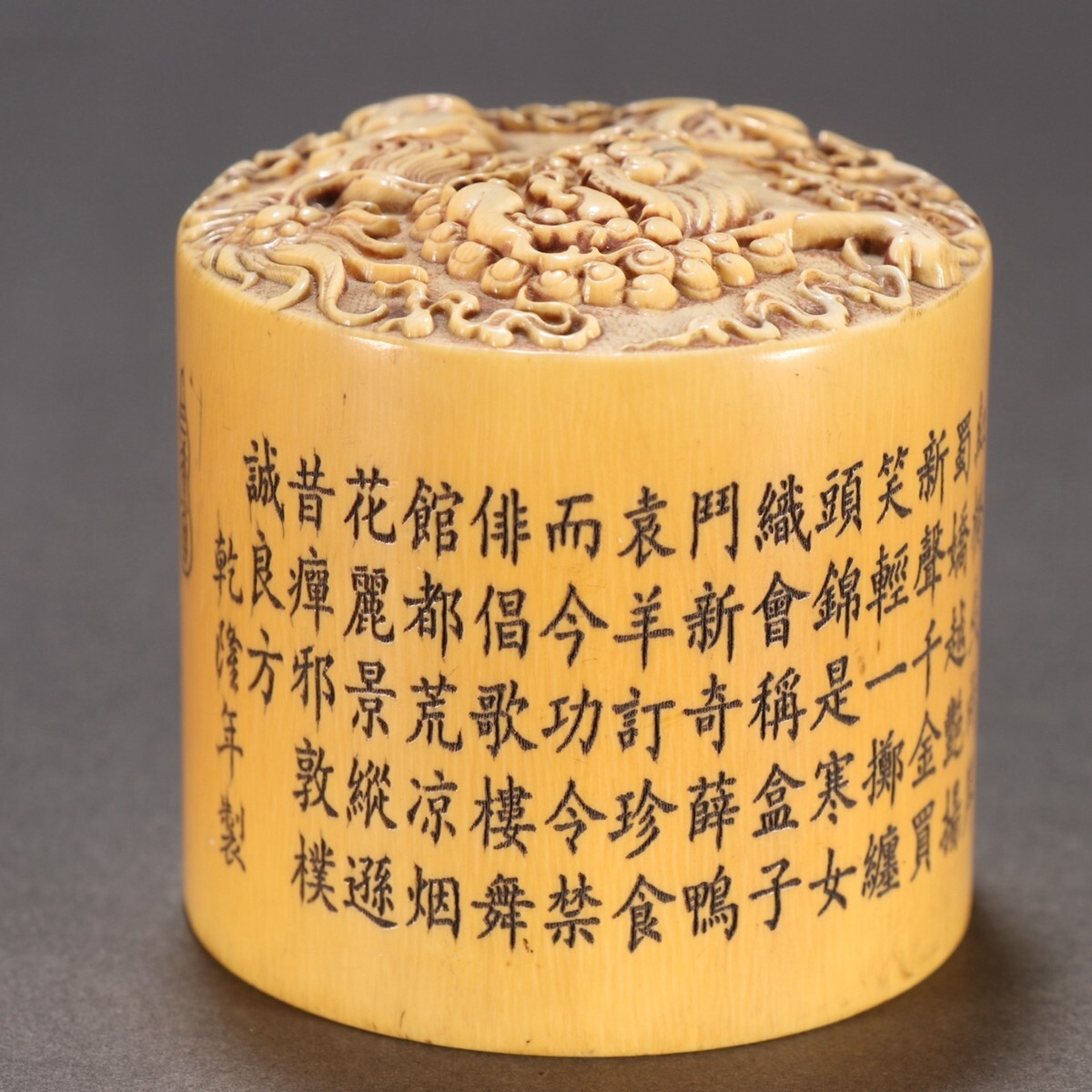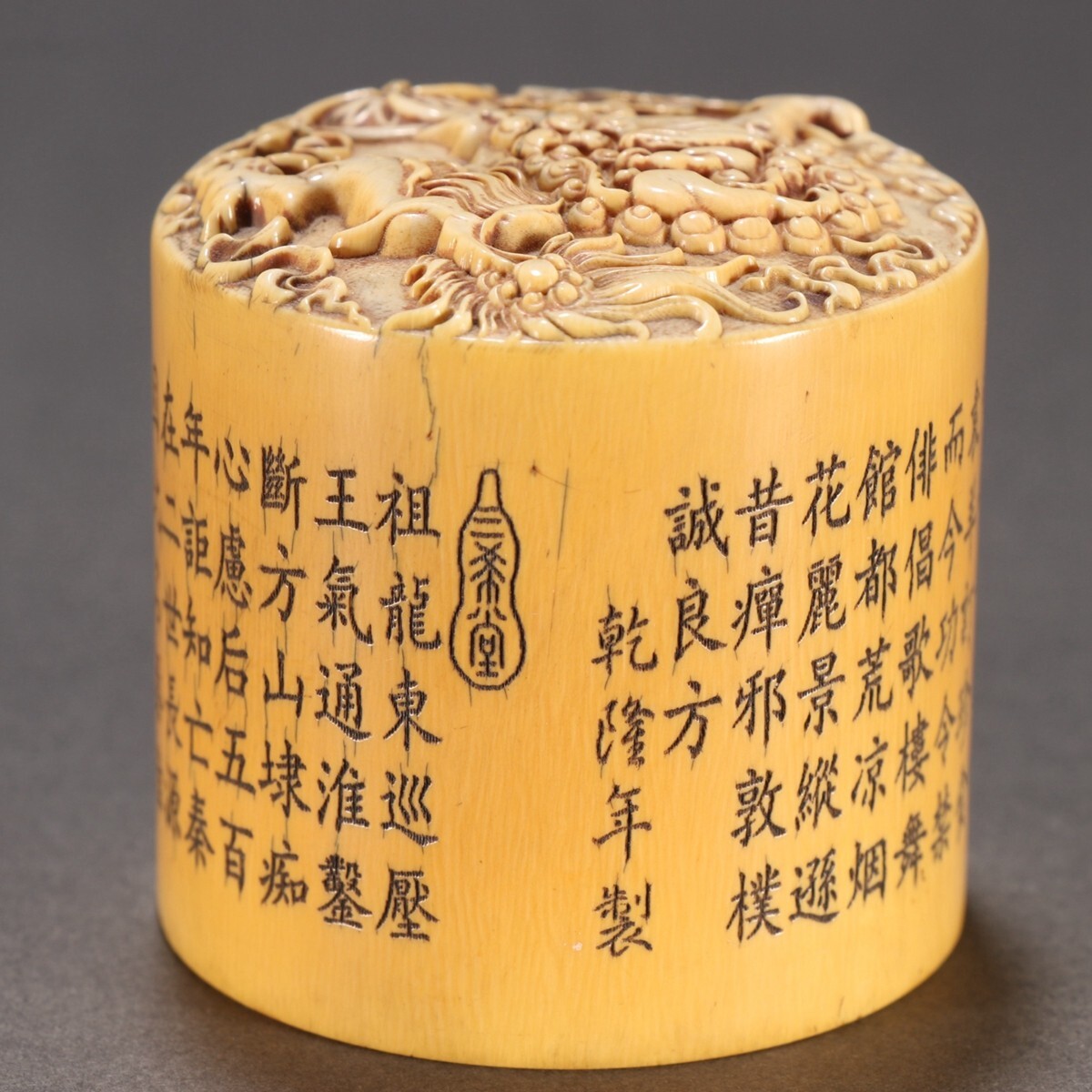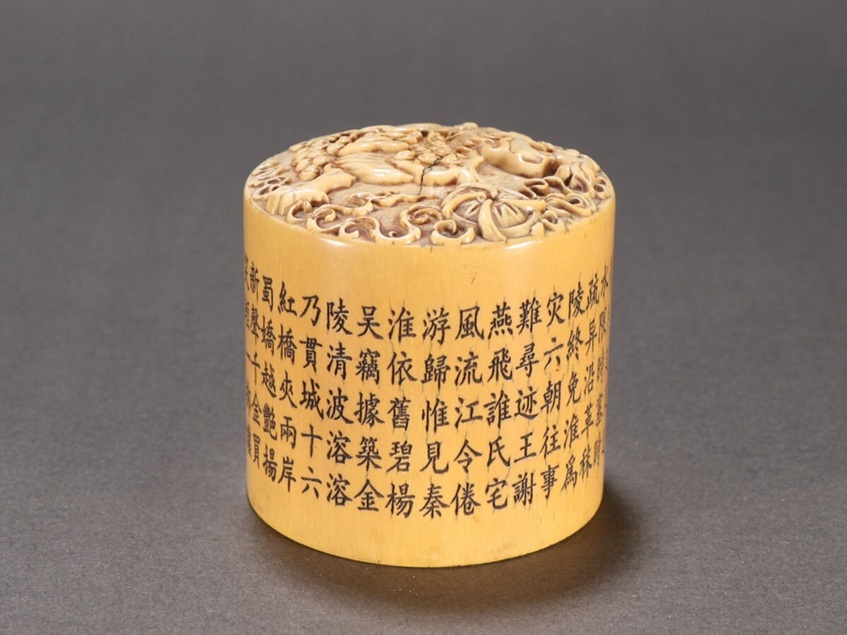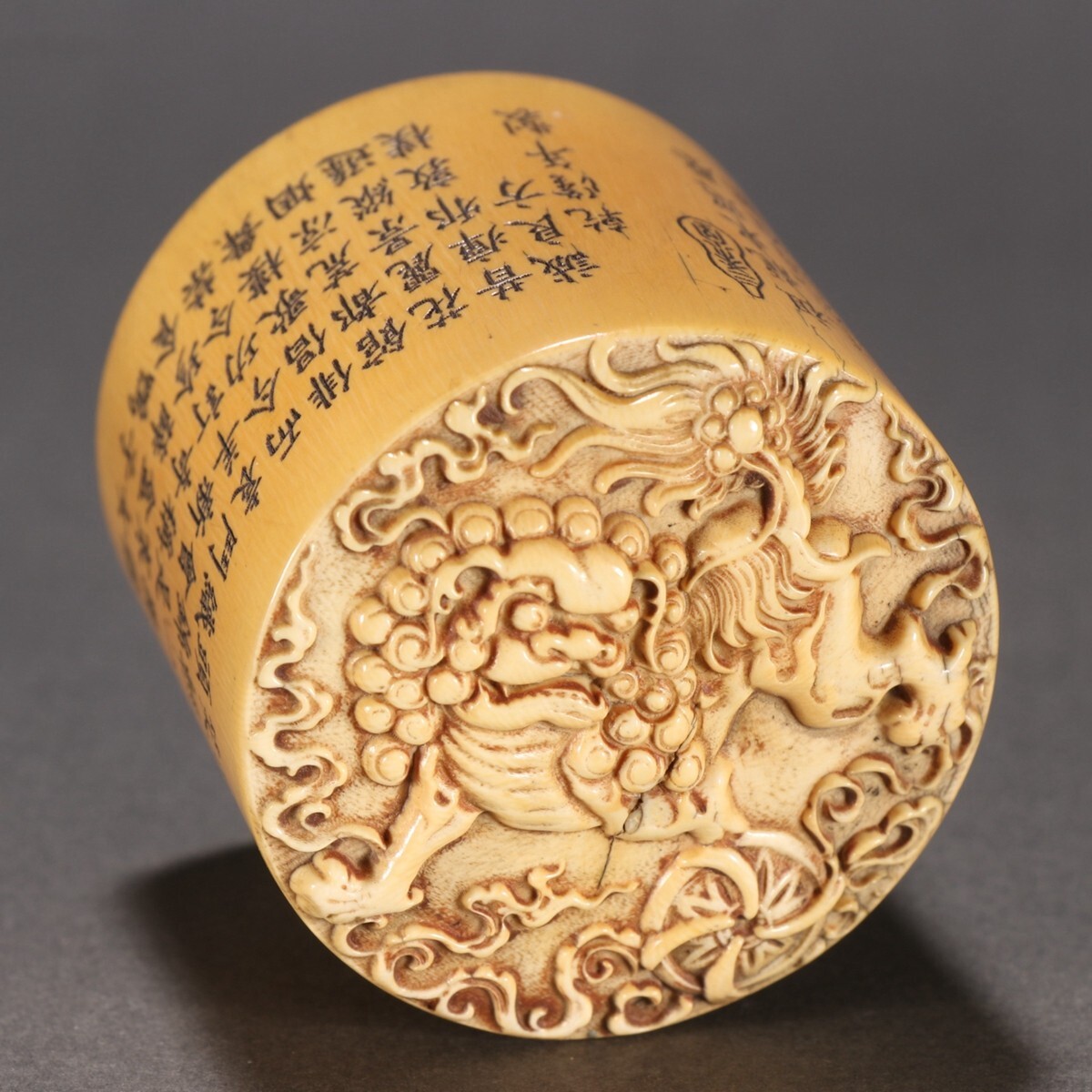 清時代 乾隆年製 古珍材マンモス彫 獅子戲球印章【仁】極細工 手彫り 中国古賞物 古美術 蔵出