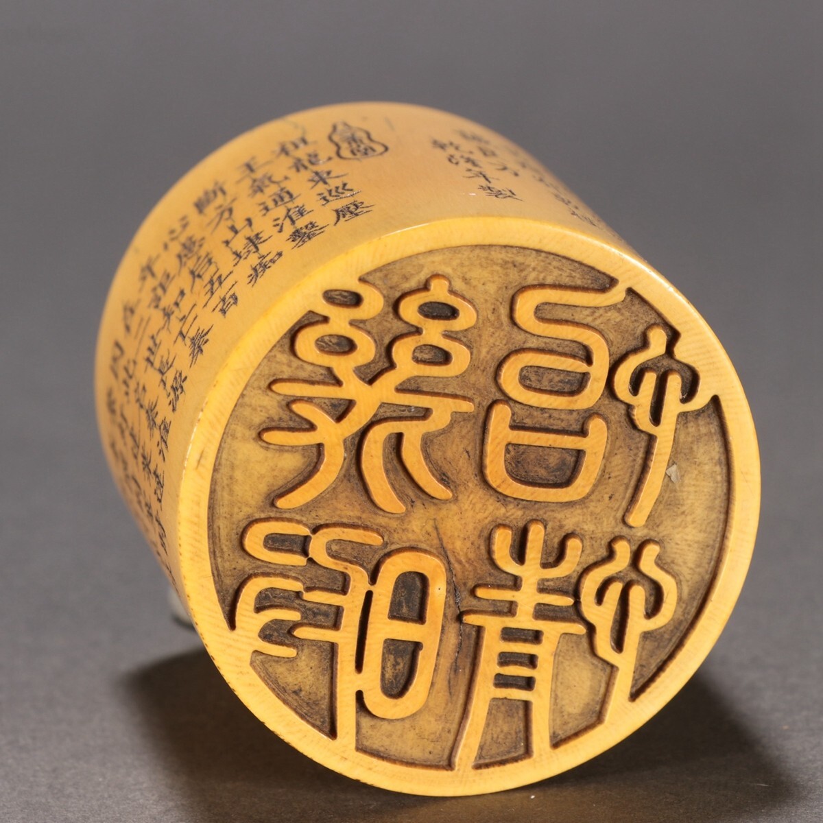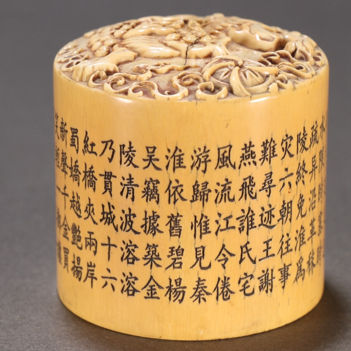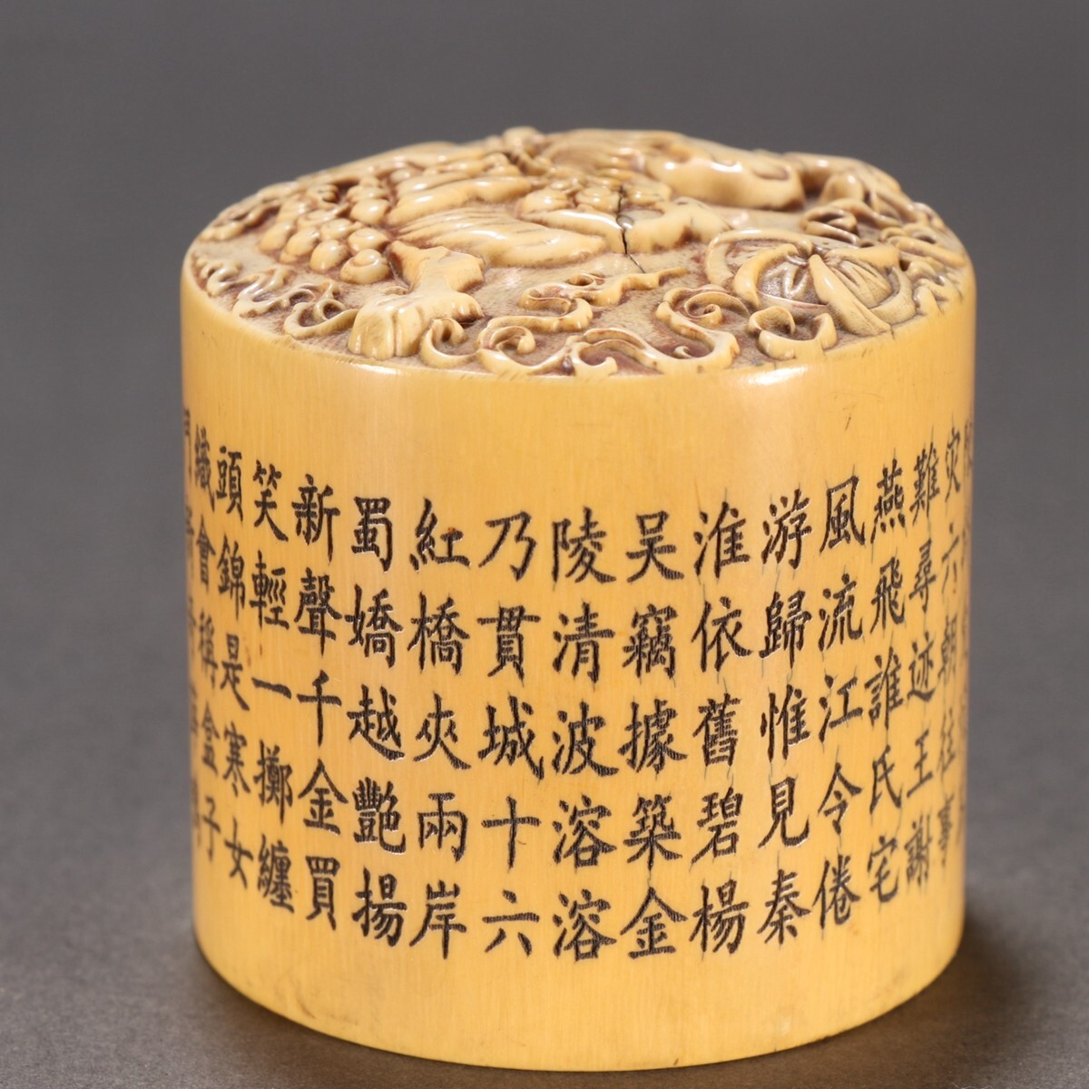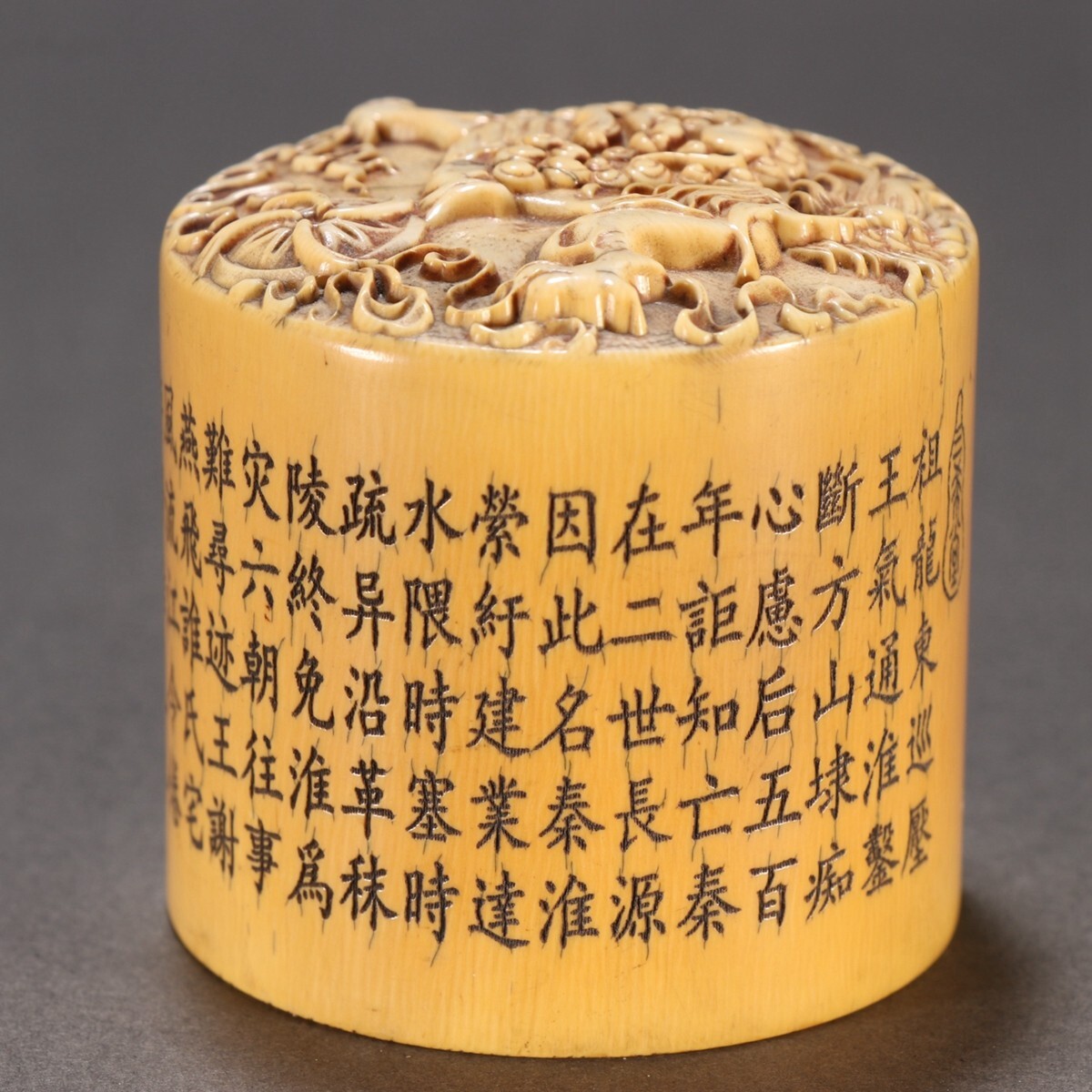 清時代 乾隆年製 古珍材マンモス彫 獅子戲球印章【仁】極細工 手彫り 中国古賞物 古美術 蔵出