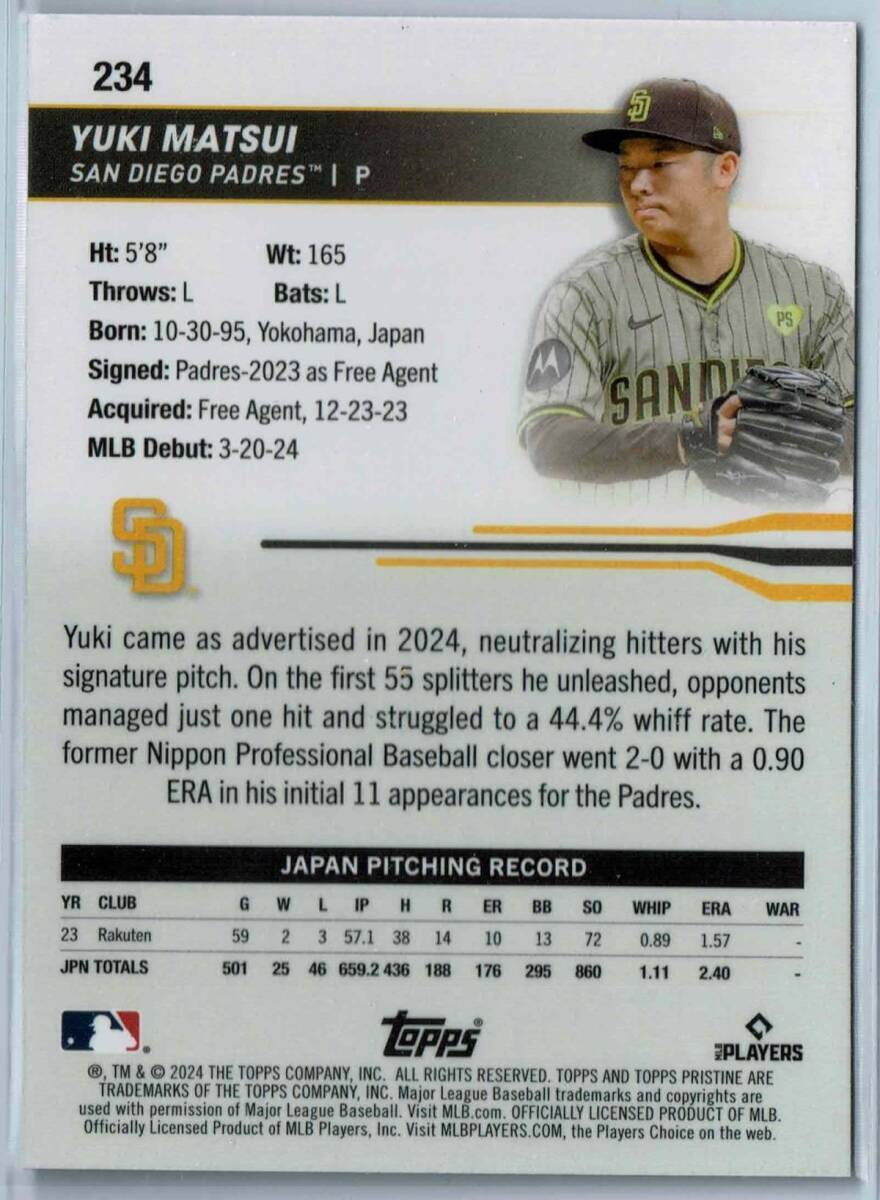 松井裕樹 青75枚限定 2024 Topps Pristine #234 ベースカード サンディエゴ パドレス