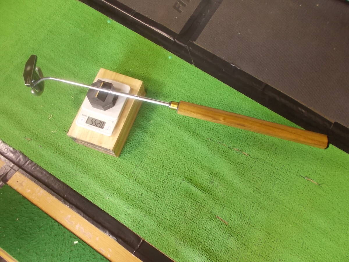 ラバーグリップを取り外し木製のグリップを装着したパターを制作しました。作品名「魔芯MACHINE」