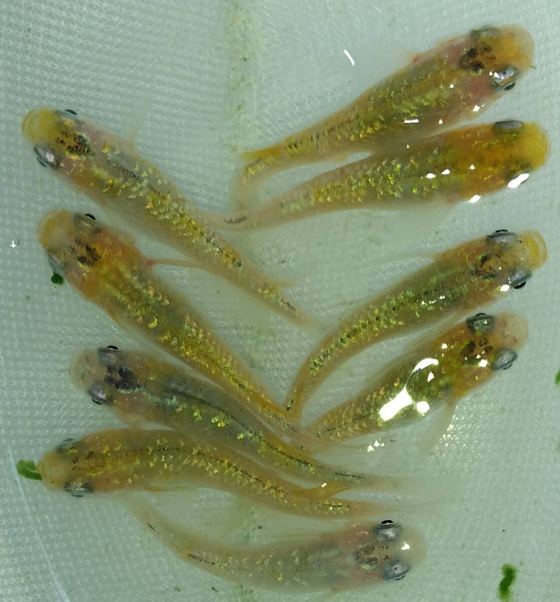 夜桜ゴールドXメダカを出品します。固定率は100%に近く安定した個体です。かなりラメもきれいで非常に人気のあるメダカですがラメの入っている箇所は個体によってばらつきがあります。発送の際はサイズにばらつきがありますのでご理解ください。黒の容器で飼育すると一段とラメがきれいに確認できます。