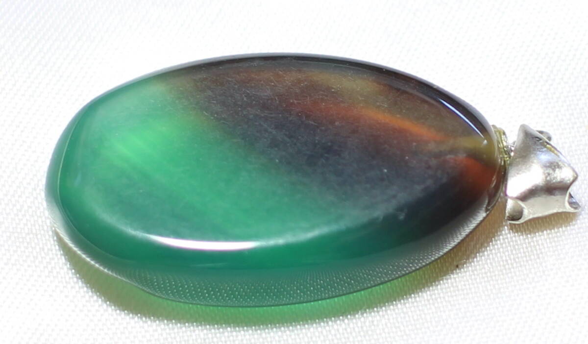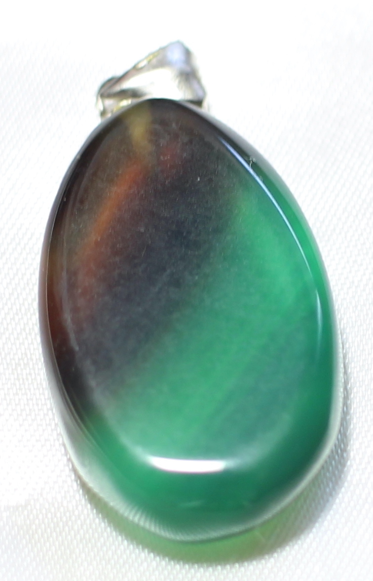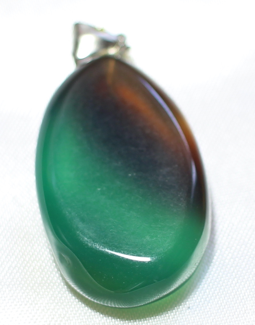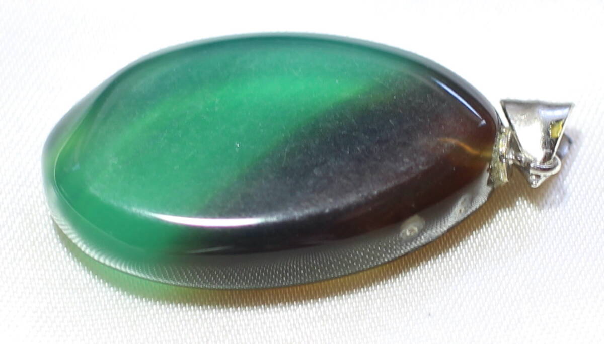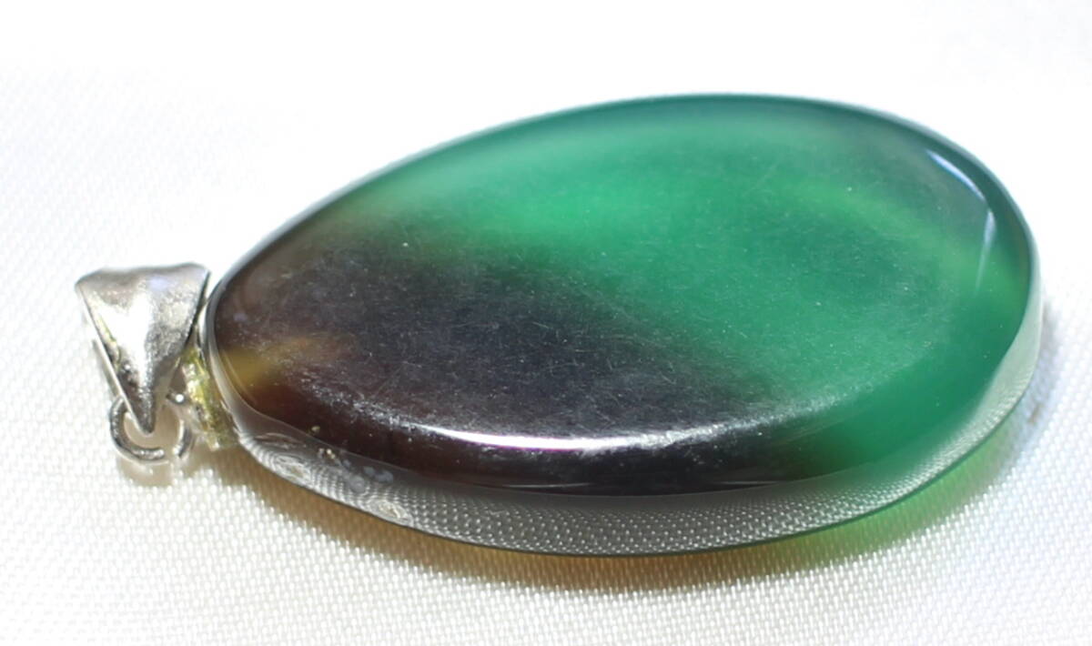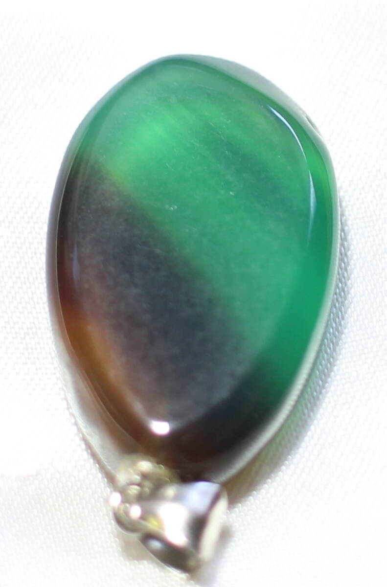 このグリーンクォーツのペンダントトップは、滑らかに磨かれており透明感があります。内部のグラデーション模様も見ることが出来ます。瑪瑙は色合いと模様でお選びください。