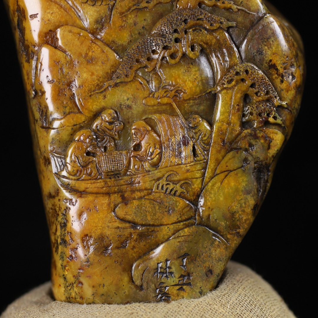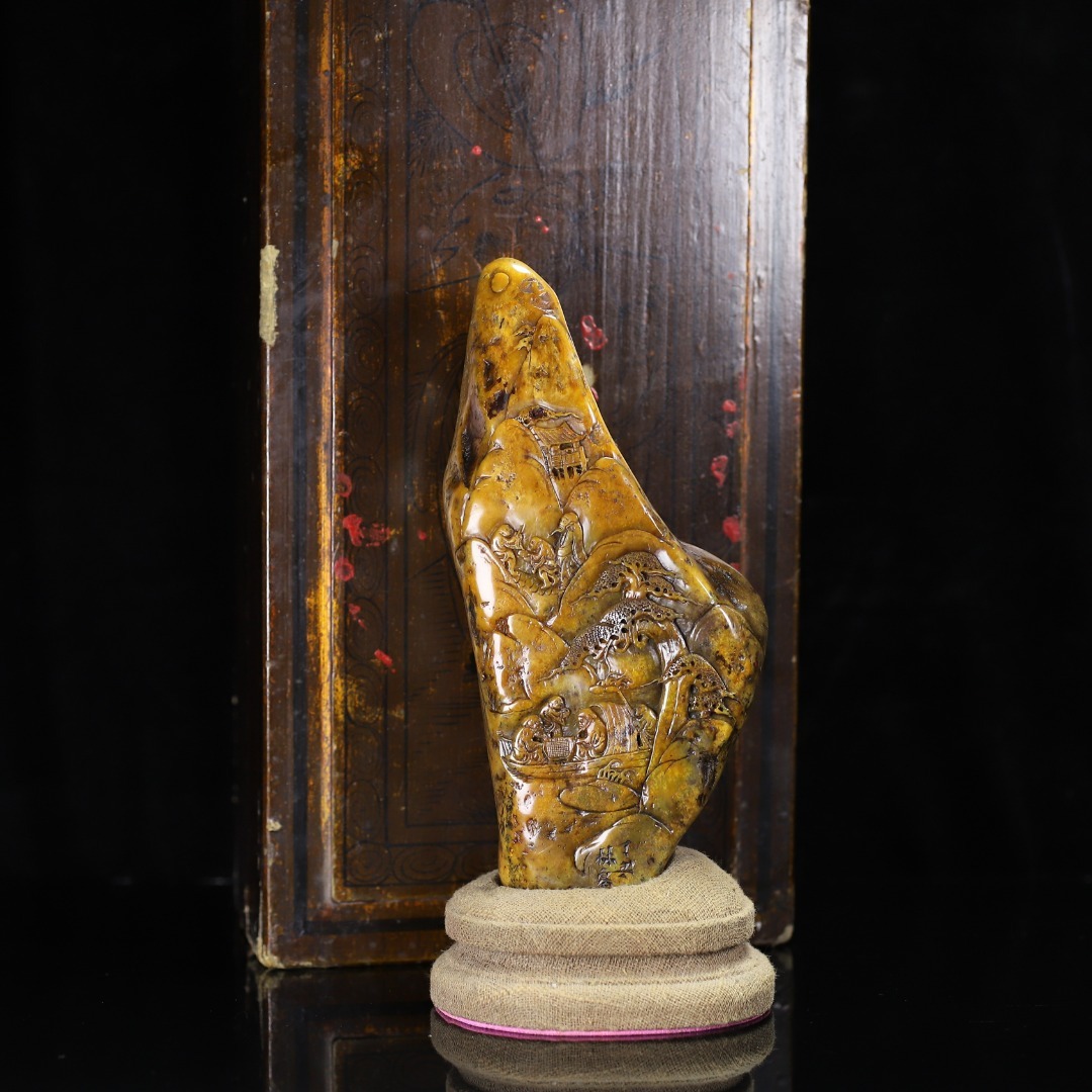 *珍品旧蔵* 【清代篆刻家 林皋】寿山石 田黄石 訪友閑章 印鑑 木箱 天然石 手彫 篆刻 古印材 極細工 中国古玩 骨董品 古美味 H48