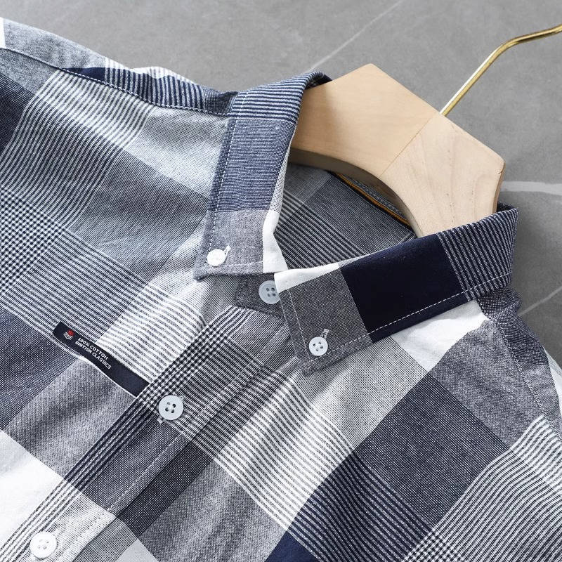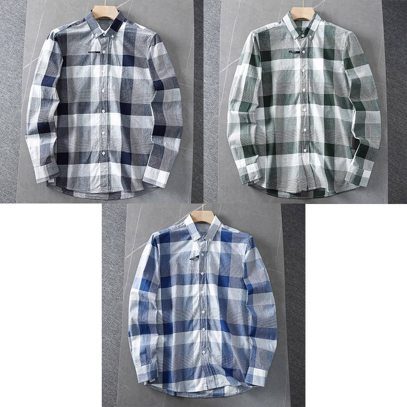 Y6201-3XL ネイビー 新品 DCKMANY 格子柄シャツ 先染め 綿100% ウォッシュ加工 長袖シャツ メンズ 夏秋 コットン ボダンダウン ワイシャツ