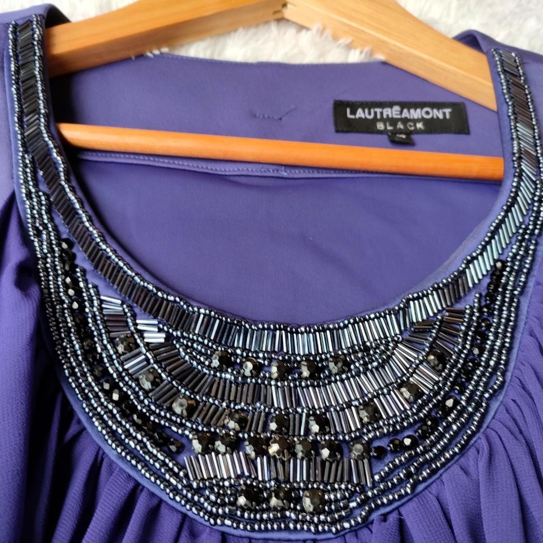 美品 LAUTRE AMONT BLACK ロートレアモン パーティドレス ワンピース アレンジ可能 ビジュー 40 L フォーマル 結婚式 謝恩会 ノースリーブ 裏地付き