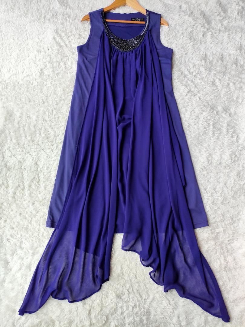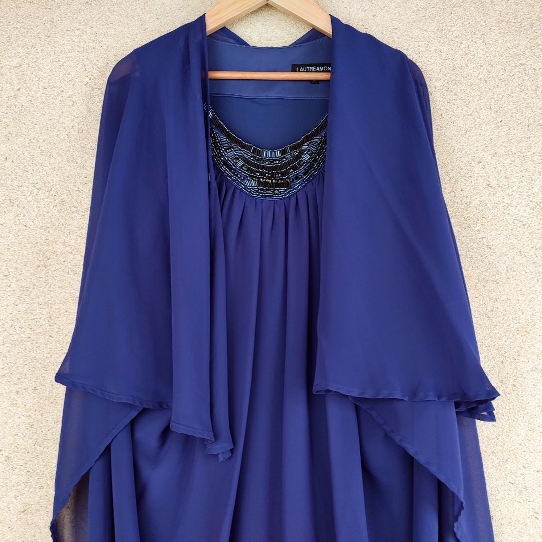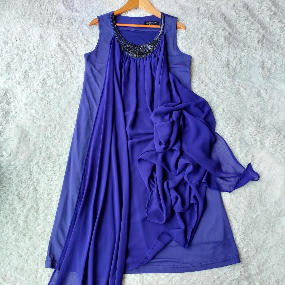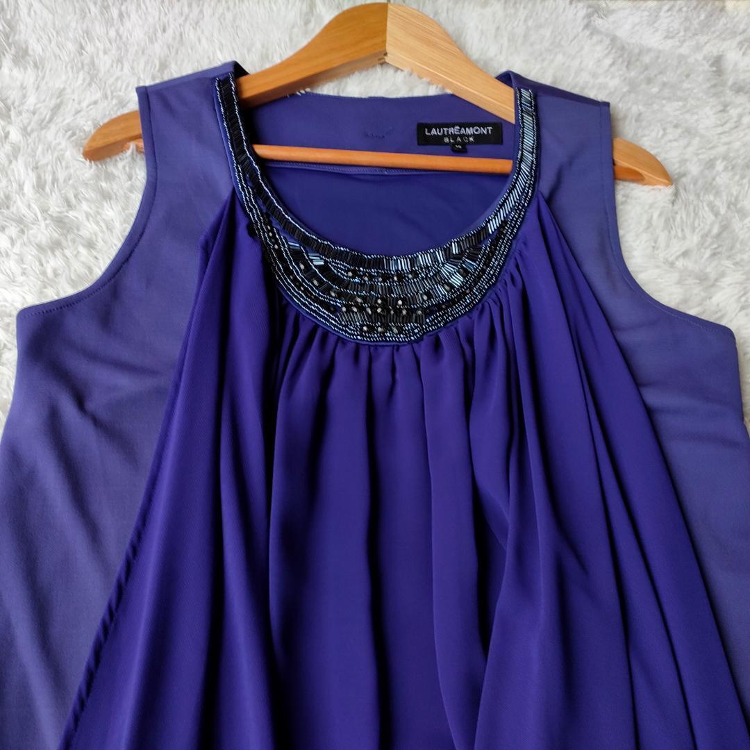 美品 LAUTRE AMONT BLACK ロートレアモン パーティドレス ワンピース アレンジ可能 ビジュー 40 L フォーマル 結婚式 謝恩会 ノースリーブ 裏地付き