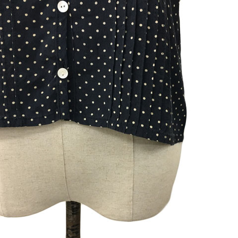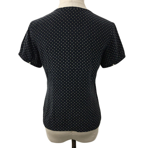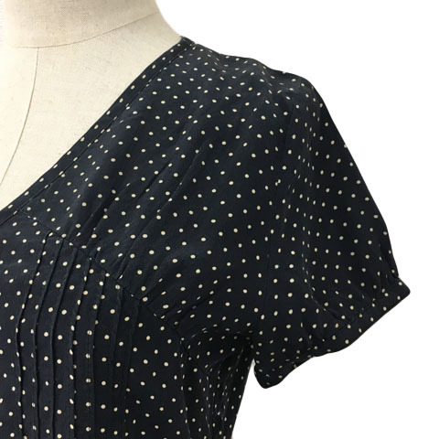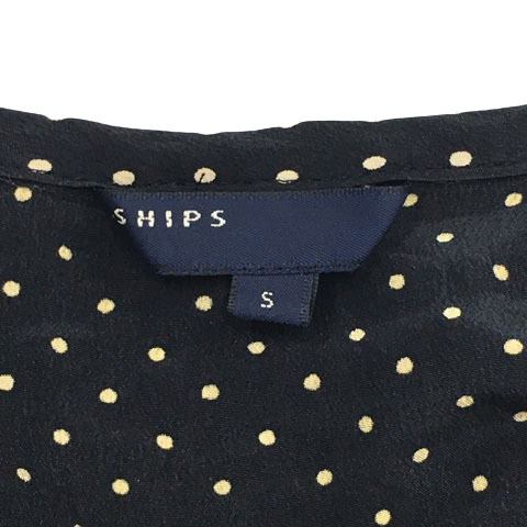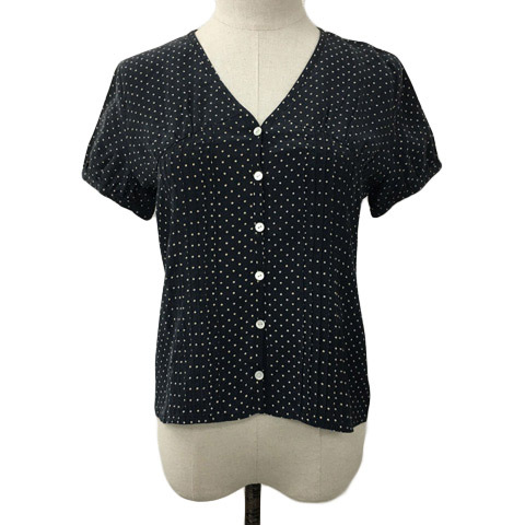 シップス SHIPS ブラウス シャツ Vネック 水玉 ドット シルク 半袖 S 黒 白 ブラック ホワイト レディース