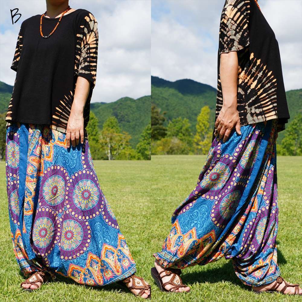 ★エスニック アラジン サルエルパンツ マンダラ プリント ★新品未使用B★ ヨガ レーヨン素材 タイパンツ ユニセックス ゆったり