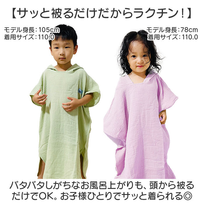 商品説明 | ・・【お風呂上りの冷え対策に☆】 ・素肌に優しいコットン100%が嬉しい♪「子供バスローブ フード付き」が新登場。 ・【サッと被るだけだからラクチン!】 ・バタバタしがちなお風呂上がりも、頭から被るだけでOK。お子様ひとりでサッと着られる◎ ・【敏感肌にも安心のコットン100%】 ・お風呂上りのデリケートな素肌に優しい、コットン100%の生地。ふかふか柔らかで気持ちいい♪ ・【お風呂上りの湯冷め防止に大活躍】 ・お子様の冷えを気にせずに、パパママもお風呂上りのリラックスタイムを堪能できちゃう♪ ・【タオルドライができる吸水性】 ・水気や汗をサッと吸水する生地なので、タオルドライ効果もあり◎身体のポカポカをキープ ・【嬉しいフードつきタイプ】 ・濡れた髪を包み込む、フードつきタイプが便利。髪の長い女の子にもぴったり! ・【お子様にぴったりのボタンレス!】 ・煩わしいボタンが無く、はだけにくいのが嬉しいポイント!元気に動き回っても大丈夫☆ ・【プール後などにもオススメ】 ・お風呂上りはもちろん、スイミングなどの習い事や海水浴などレジャー後にも使える! |