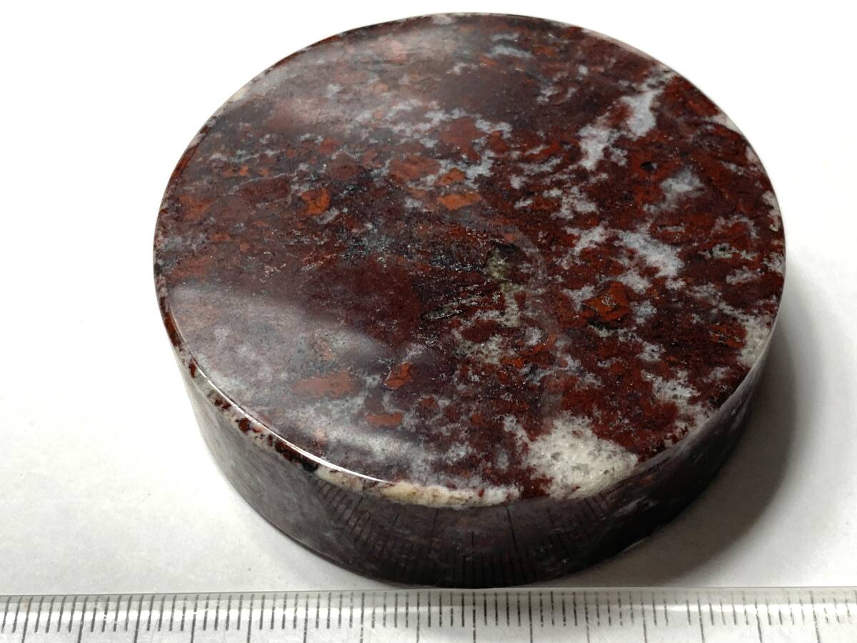 円盤状に加工された桂林鶏血石・2・128g(中国産鉱物標本)