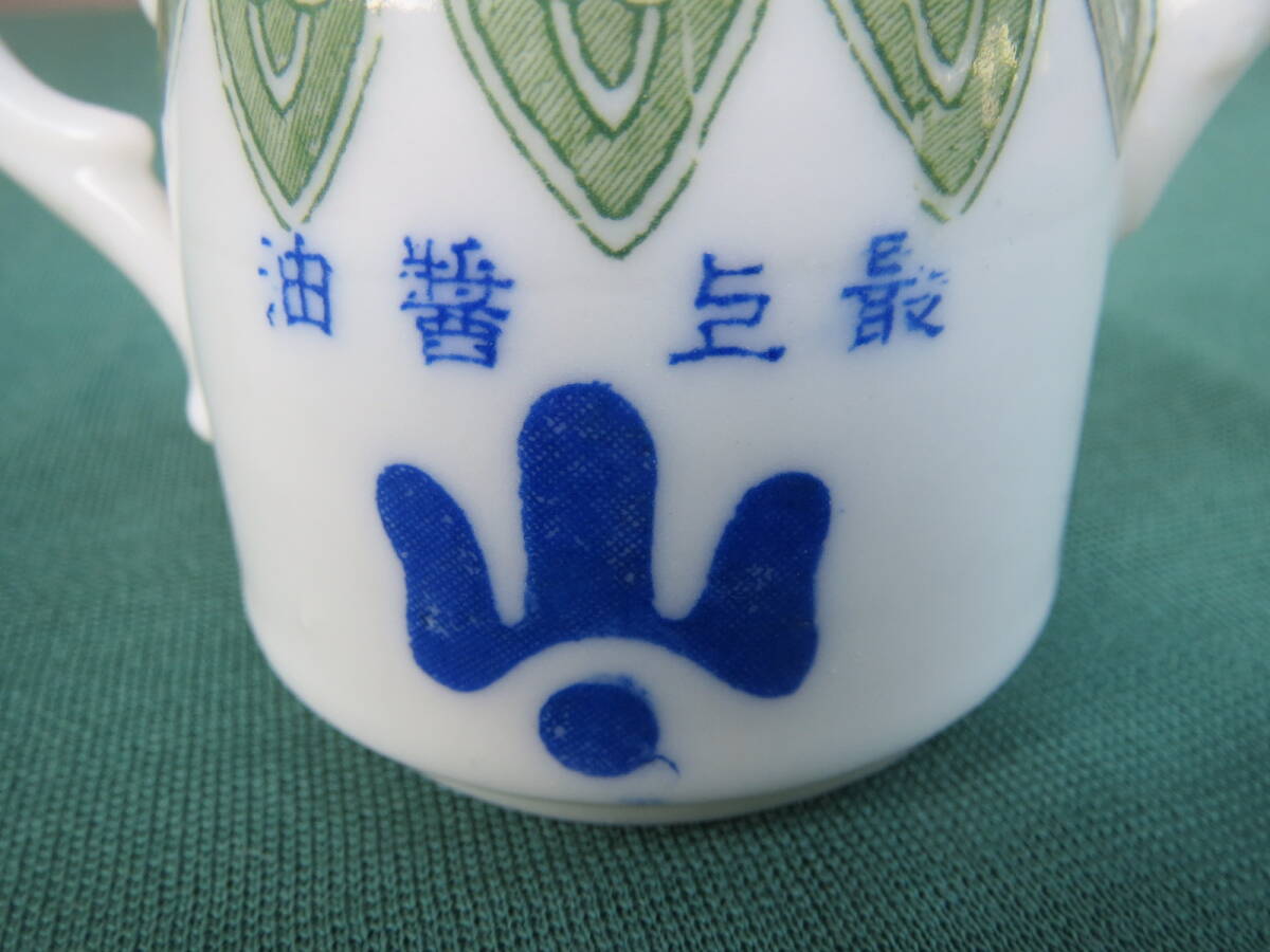 印版 磁器 醤油差し 雷紋 亀山 醤油醸造元名入 しょうゆさし (三重県)