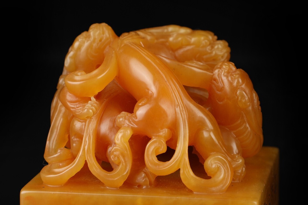 【瓏】寿山石 田黄石彫 魑龍鈕印章 印鑑 清代 嘉慶丙午年内務府監製 極細工 手彫り 置物擺件 中国古賞物 古美術 蔵出