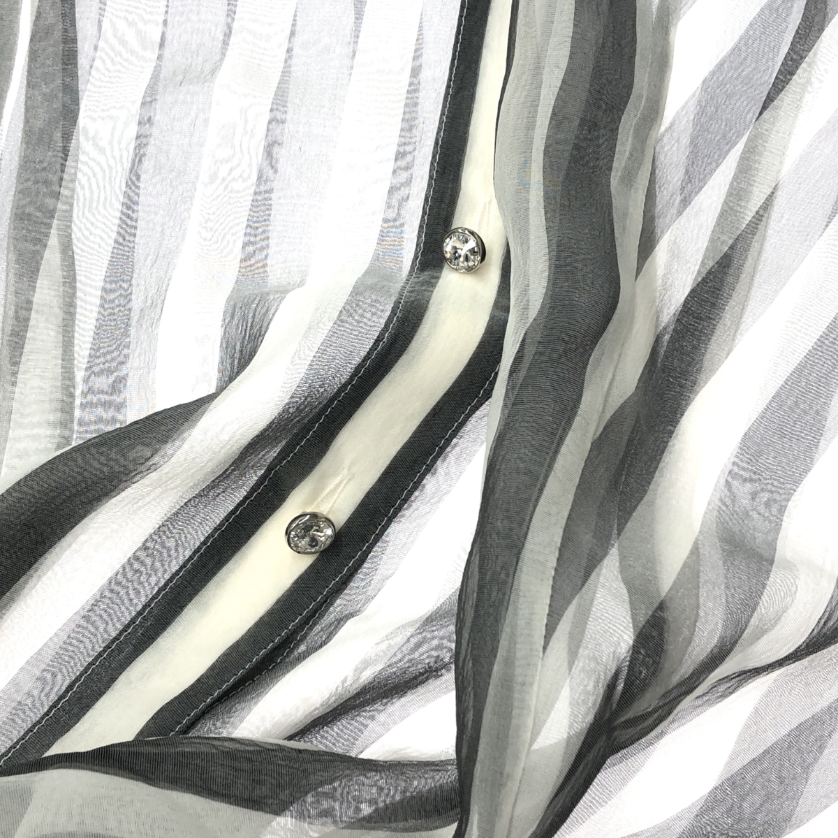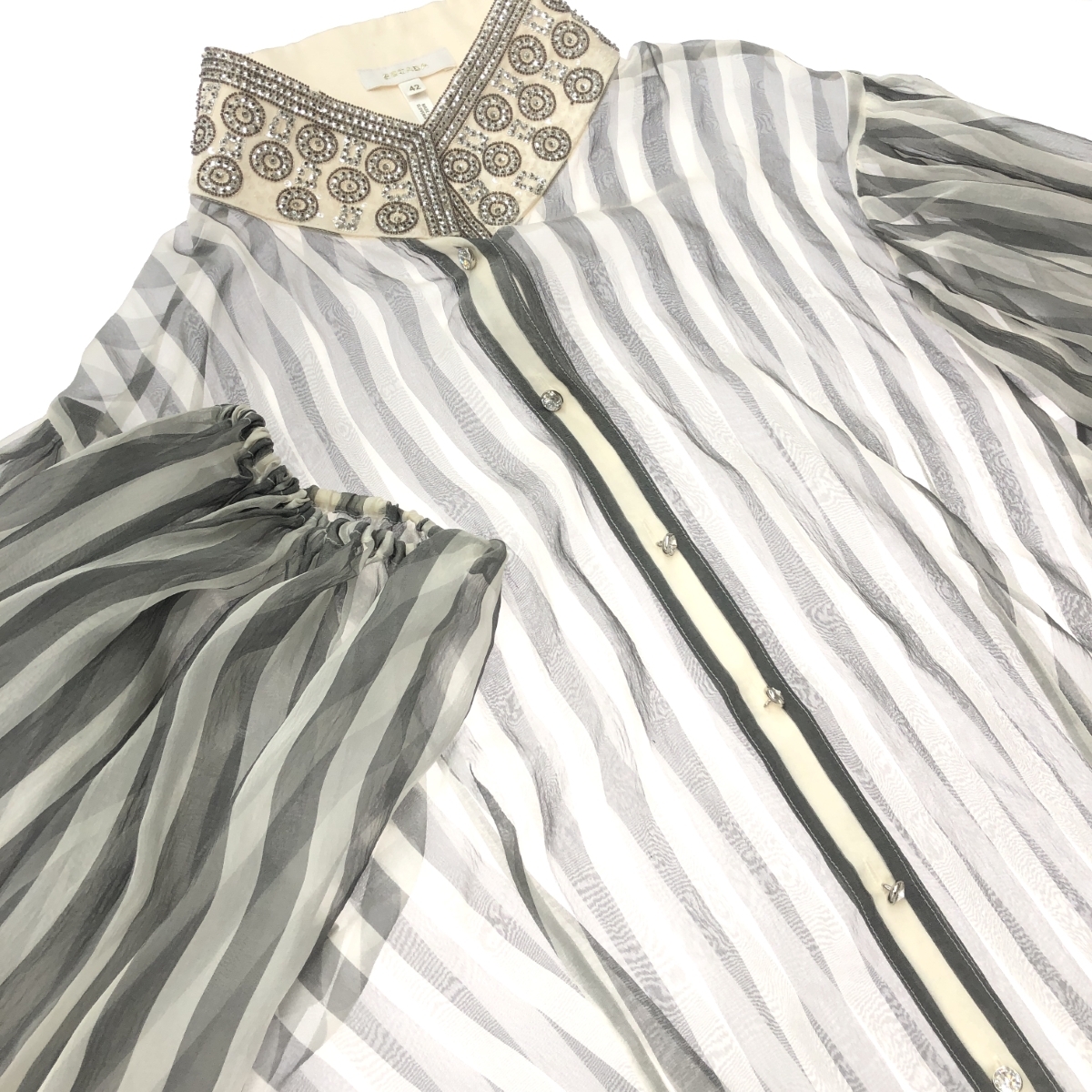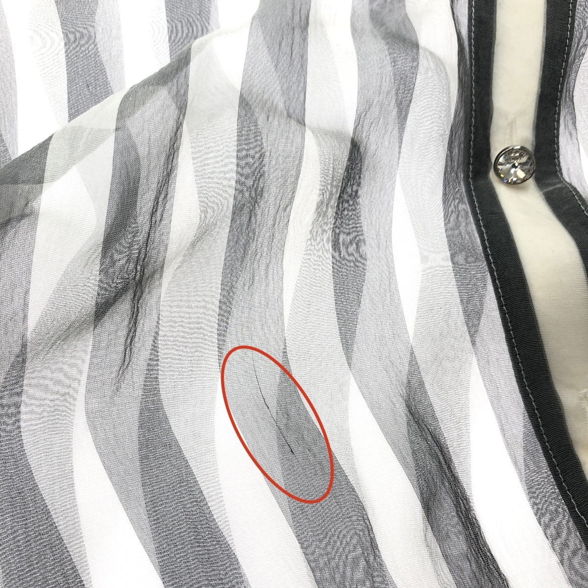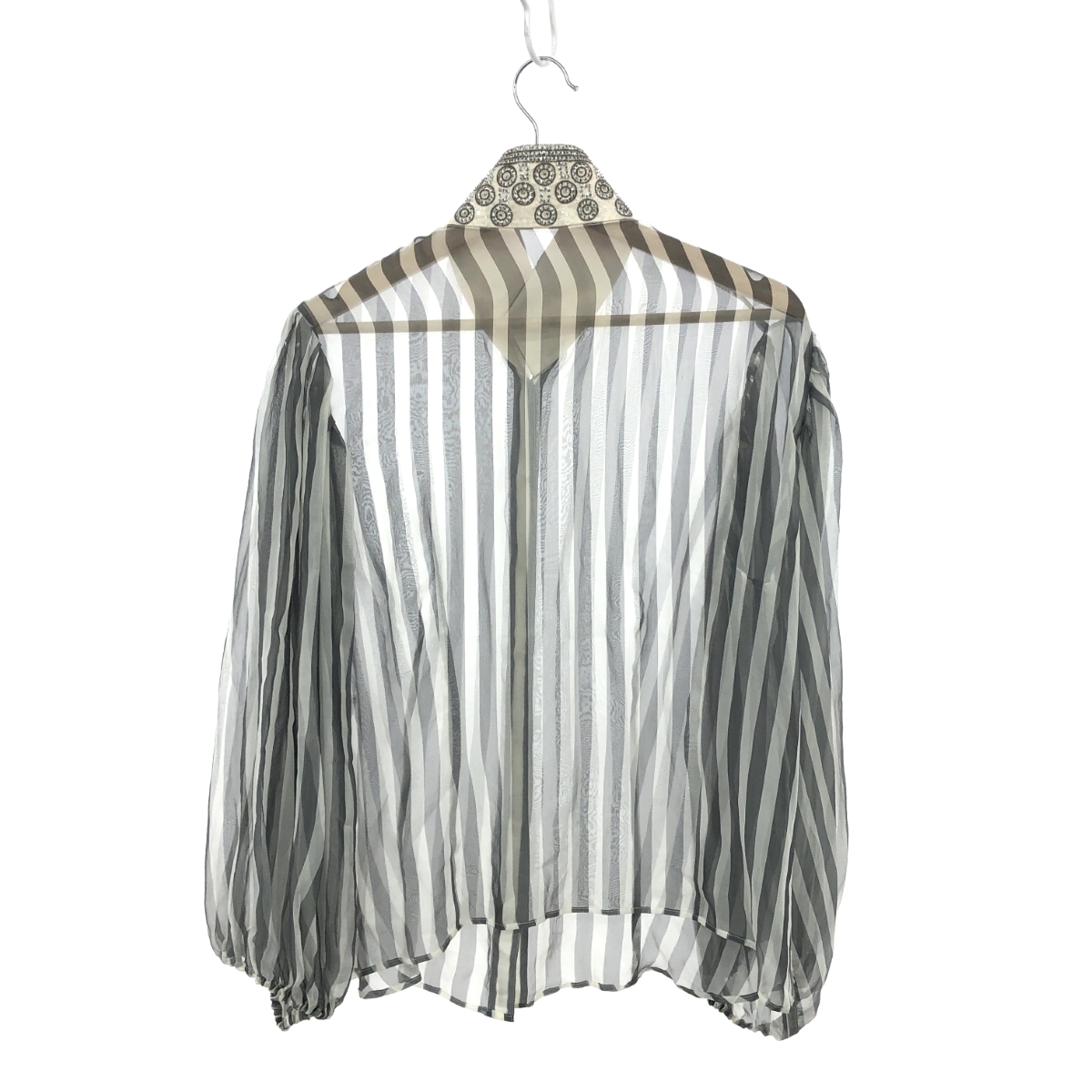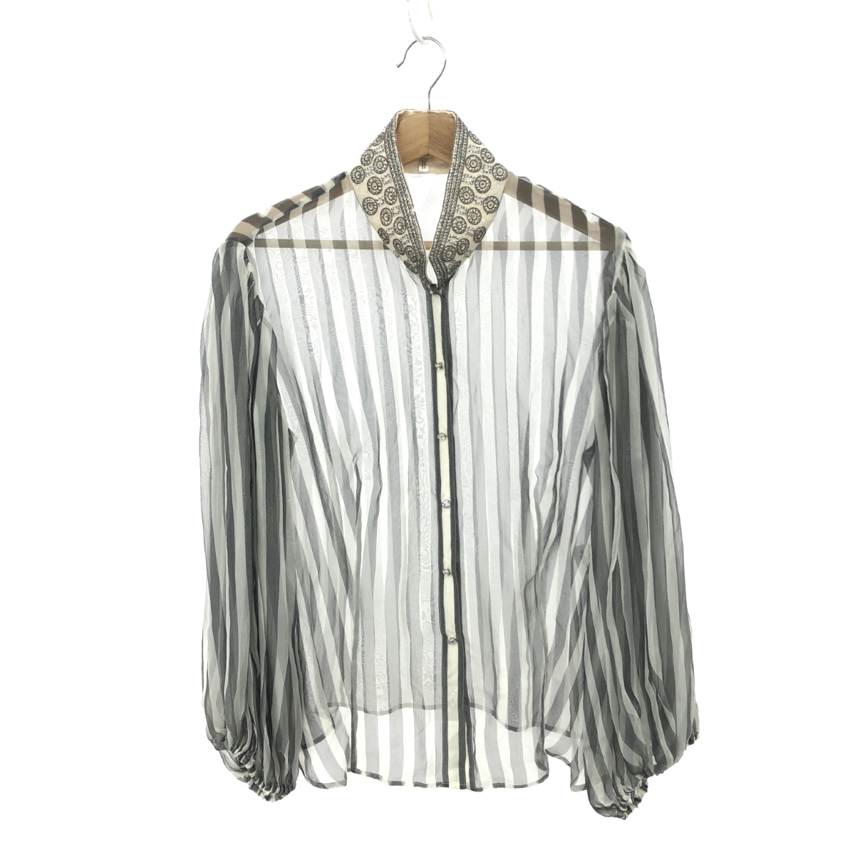 ビジュー襟・ボタンブラウス シルク100%/ストライプ/シアー ※素材は画像の素材タグをご確認ください。画像にない場合は素材タグが無く素材不明となります。 |