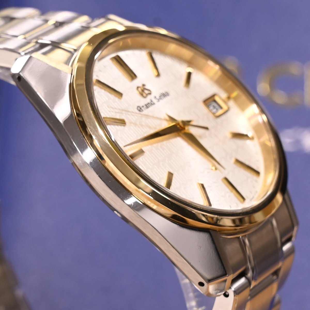 セイコーの世界限定600本 25周年記念限定 ヘリテージコレクション SBGV238 グランドセイコーです。 1993年にこれまでのクォーツを越えたクォーツとして誕生した「キャリバー9F」。 こちらはそのキャリバー9Fの25周年を記念して販売された「SBGV238」です。 ダイヤルには「GS9F」の文字を型打ちされており、25分の位置だけは「9F25」の文字がみられます。 裏蓋はクォーツ時計には珍しいシースルーバック仕様となっており、美しく仕上げられたクォーツムーブメントが見られます。 市場流通量の圧倒的に少ないモデルなのでお探しの方も非常に多いかと思います。 ※基本動作確認済。 |