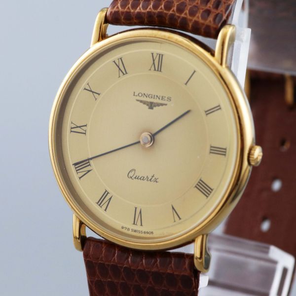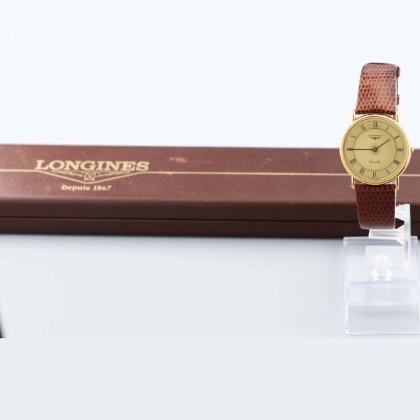 ★稼働美品★箱あり ロンジン Longines クォーツ 腕時計 ヴィンテージ 20925048 SS/GP 金色文字盤 ローマ数字 純正箱付
