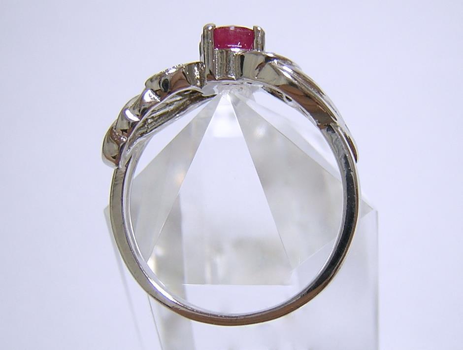 天然ルビーとキュービックジルコニアを使用したデザインリングです。 ルビーの大きさは約5mmで、表面に天然由来のキズがあります。 【中石】天然ルビー 【産地】マダガスカル産 【処理】加熱・含浸 【カット】ラウンドファセットカット 【脇石】キュービックジルコニア 【重さ】3.4g 【サイズ】16号 (お直しは承れません) デザイン部:縦7mm×横21mm 【素材】シルバー925 (14金ホワイトゴールド仕上げ) 【刻印】925 【状態】新品 ※地金部分に製作時からの微細な小傷やスレがあります。 |