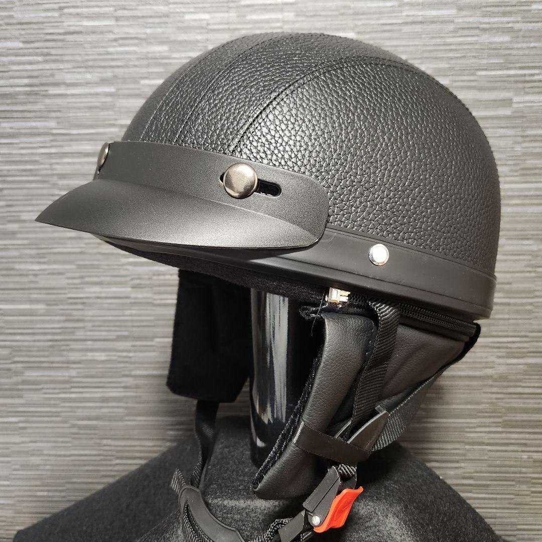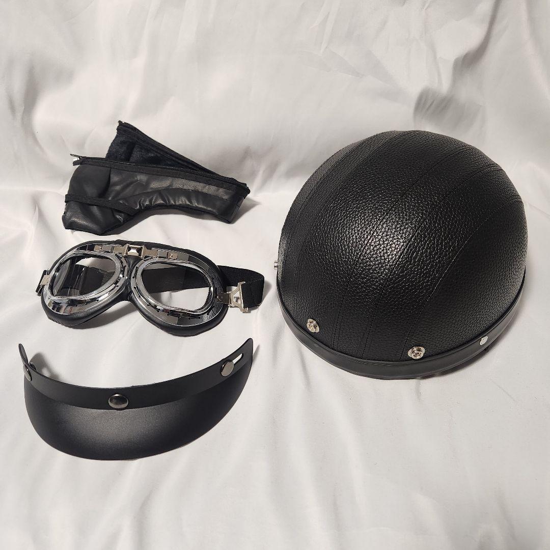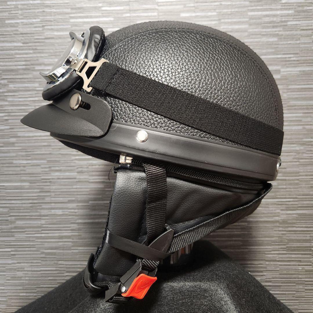 ヴィンテージ感漂うゴーグル付きレザーヘルメットレザー調ブラックです。