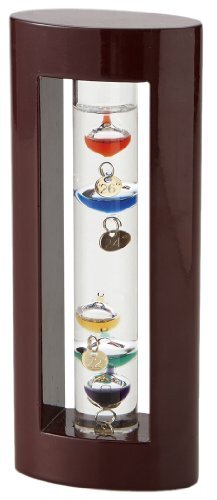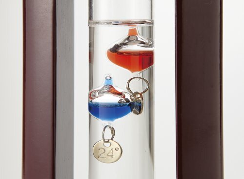 ガリレオ・ガリレイが発見した、液体の比重が温度によって変化する原理を使って作られた温度計です。ガラス球が温度によって上下します。インテリアとして、置くだけでも目を楽しませてくれる温度計です。
