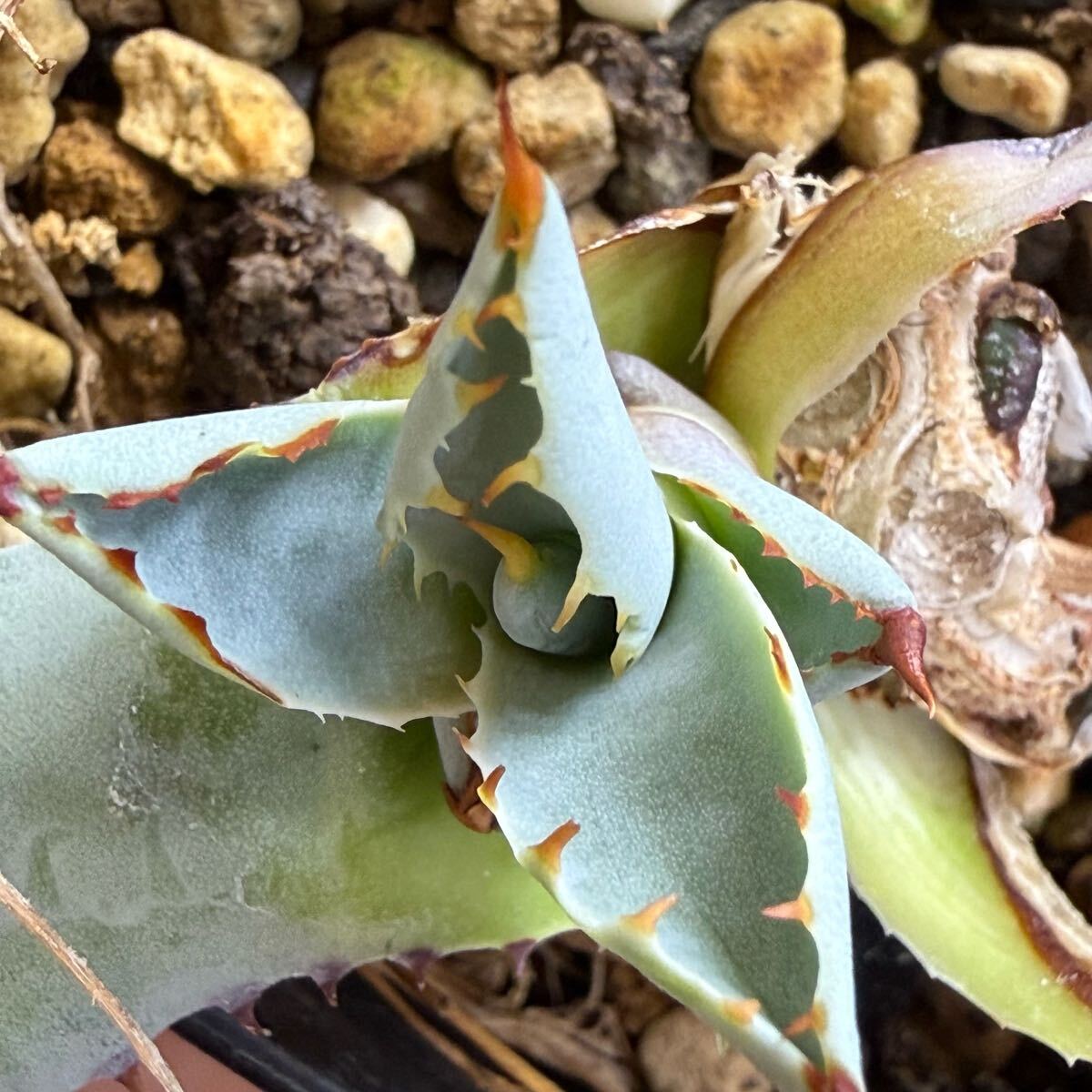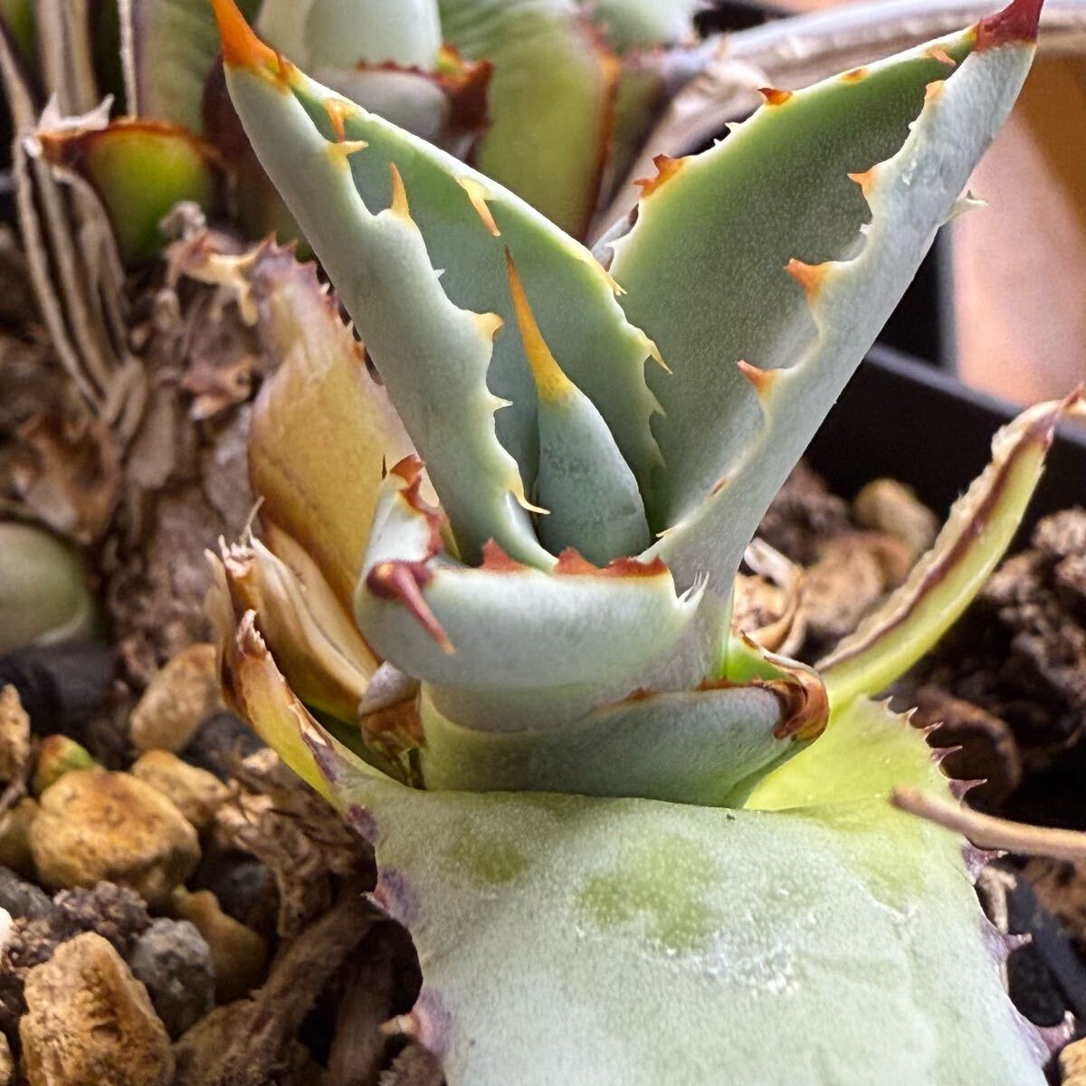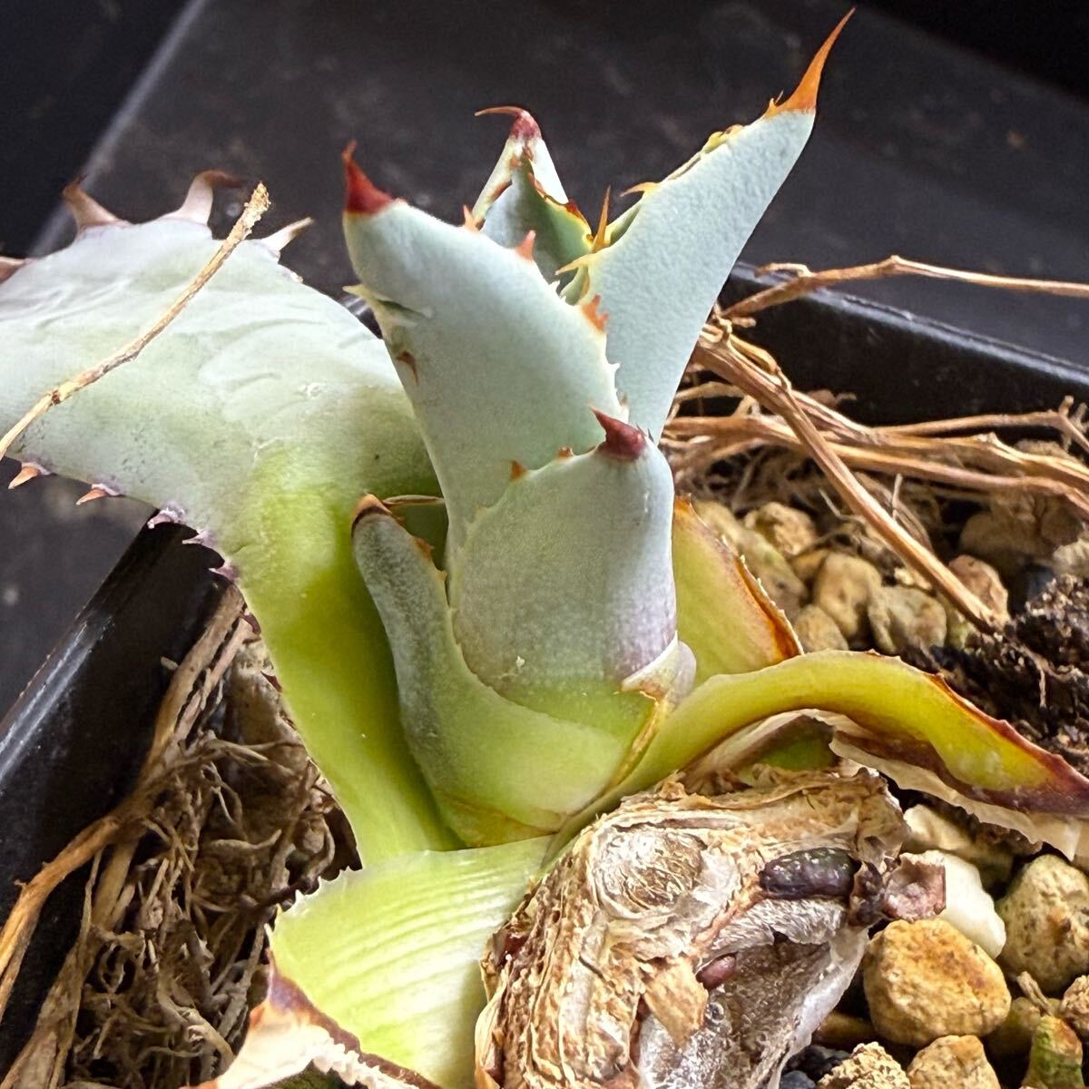 アガベ 超ブルー葉 ハイブリッド 激怒甲蟹x屈原舞扇 激怒之舞 lize血統 子株 連刺 青葉 ブルー葉 実生