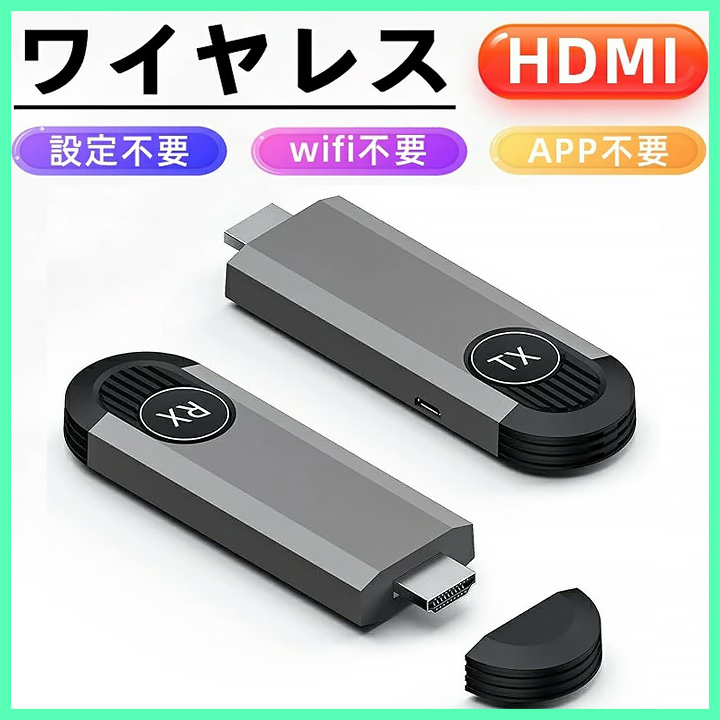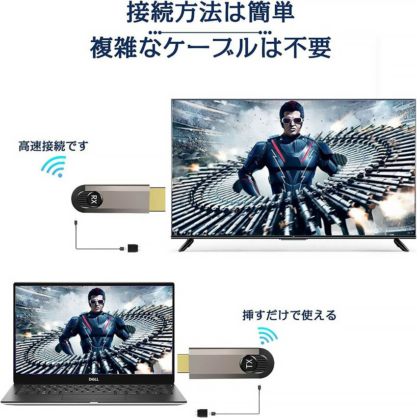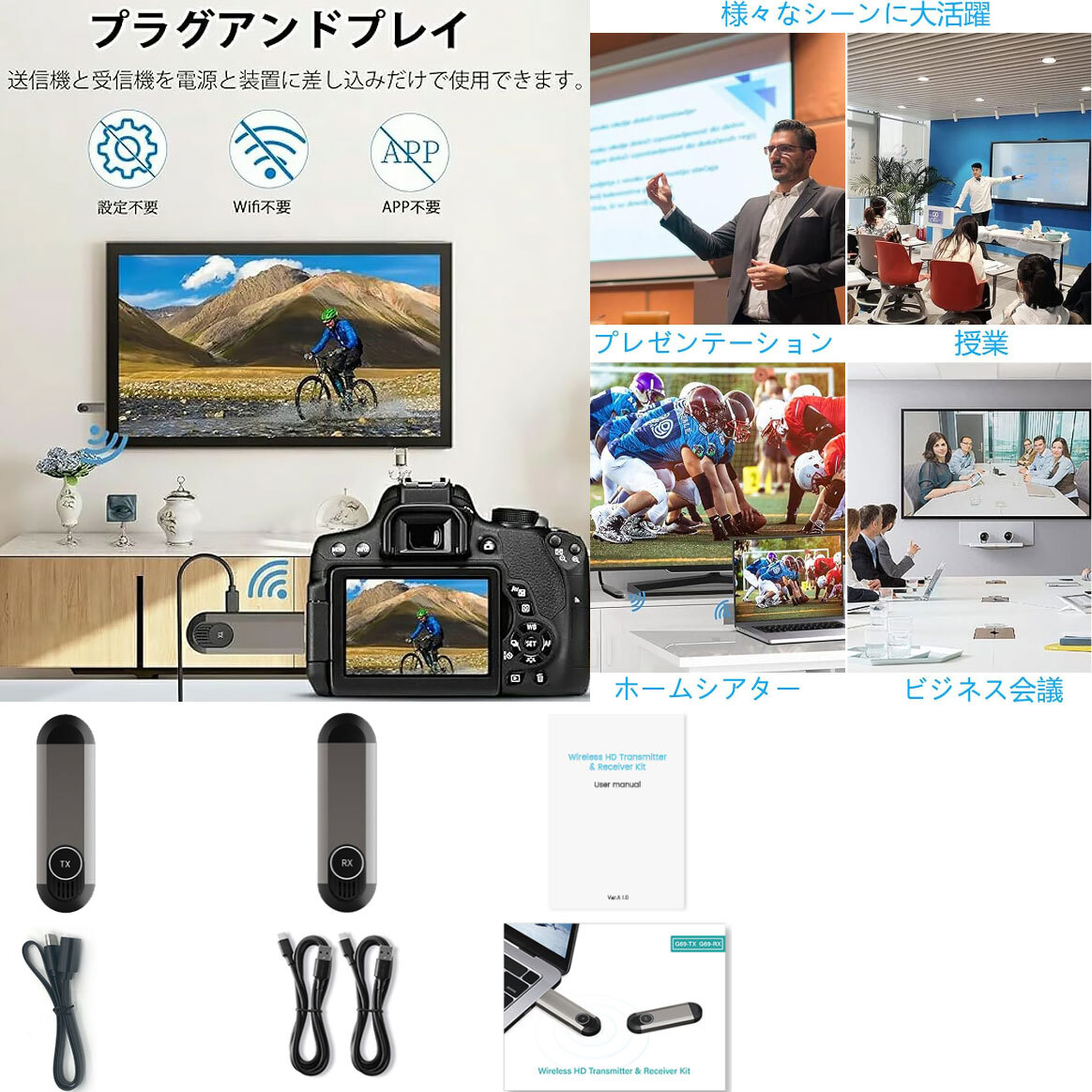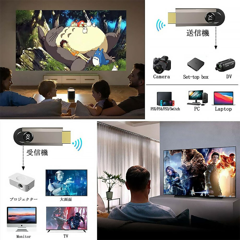 HDMIワイヤレス受信機(RX)はタブレット/スマホ,TV,Monitor,プロジェクター,Windows, Mac OSなどに対応。送信機(TX)はCamera,Set-top box,DV,PS5/PS4/PS3/Switch,PC,Laptopなどに対応。アプリをダウンロードする必要がなく使いやすく、WiFiの接続も必要ありません。TXと送信機器、RXと受信機器を簡単に挿すだけで使用可能。教室の映像伝送、会社のプレゼンテーション、屋外のモニター、ホームシアター、ゲームパーティーなどに!