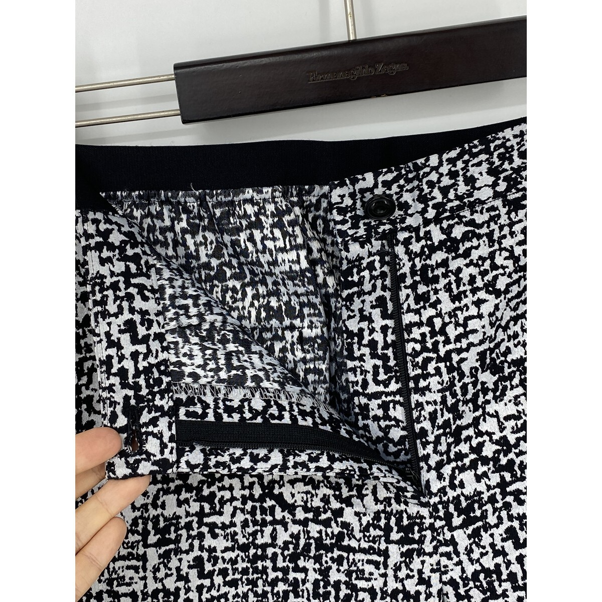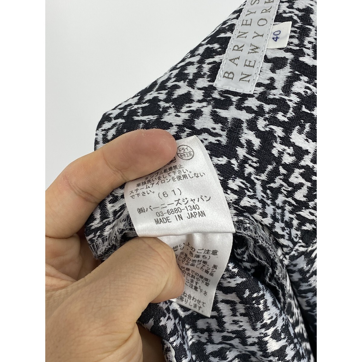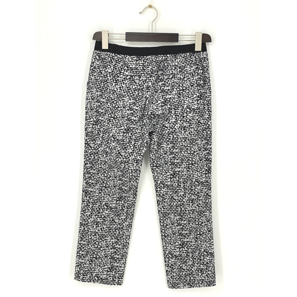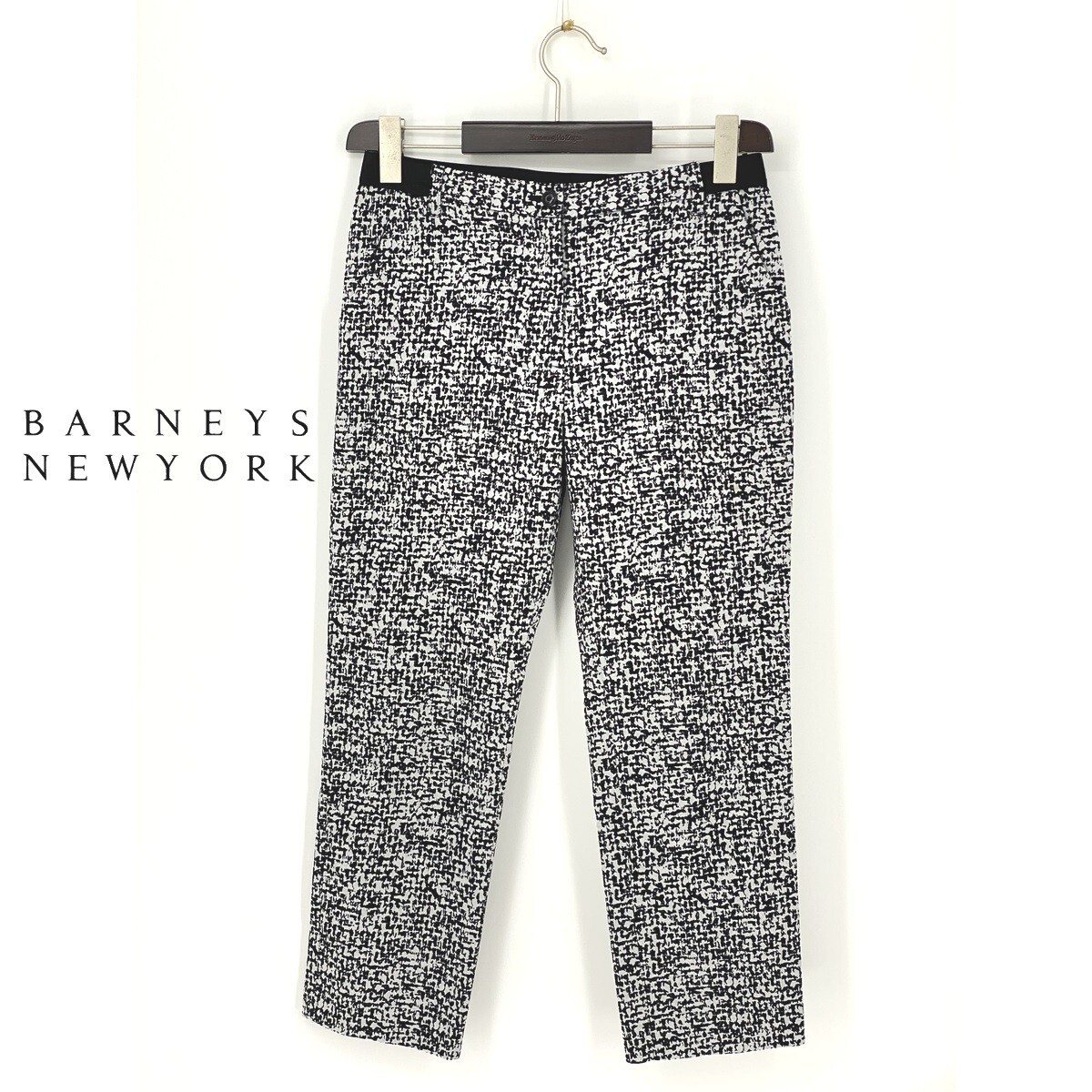 B0261/極美品 BARNEYS NEWYORK バーニーズ コットン ストレッチ 総柄 ヒョウ柄 テーパード スラックス パンツ 40 M程 白 黒 レディース