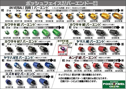 カワサキ純正5mmバーエンド穴に適合 アルミ削り出し、アルマイト/メッキ仕上げ M5X40ステンレスボルト付属。 左右セット ポッシュフェイス社 ステンレスハンドルにも適合。 内径17.5~19mmのハンドルに対応 取り付けの際、脱落防止の為、ネジロック剤の塗布を推奨致します。 適合車種 ゼファー400 ZRX400 ZRX400II BALIUS