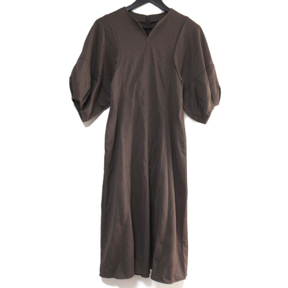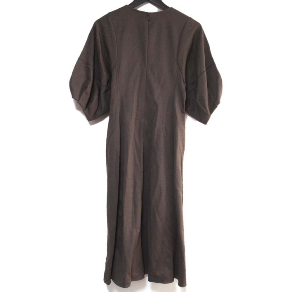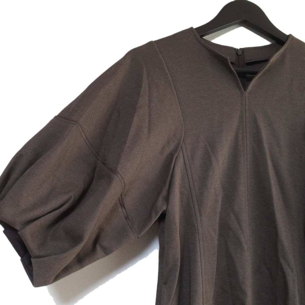 商品名:ANAYI アナイ バルーンスリーブ 五分袖 ミモレ丈 スキッパー プルオーバー ワンピース 36サイズ ブラウン カーキ系