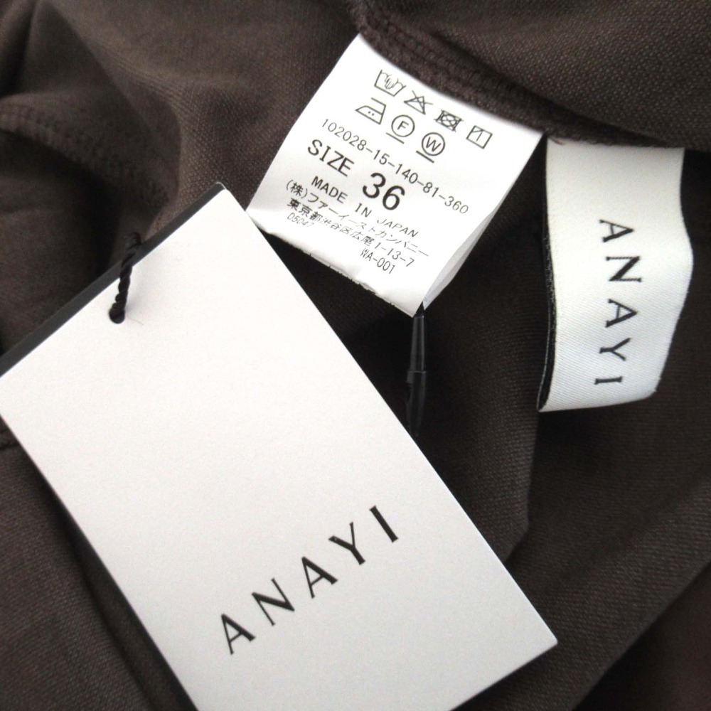 未使用 ANAYI アナイ バルーンスリーブ 五分袖 ミモレ丈 スキッパー プルオーバー ワンピース 36サイズ ブラウン カーキ系