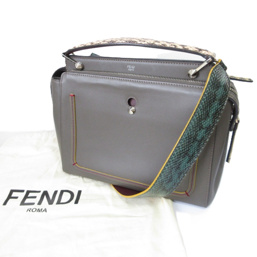 美品 FENDI フェンディ ドットコム パイソン レザー 2way ショルダーバッグ ハンドバッグ グレー