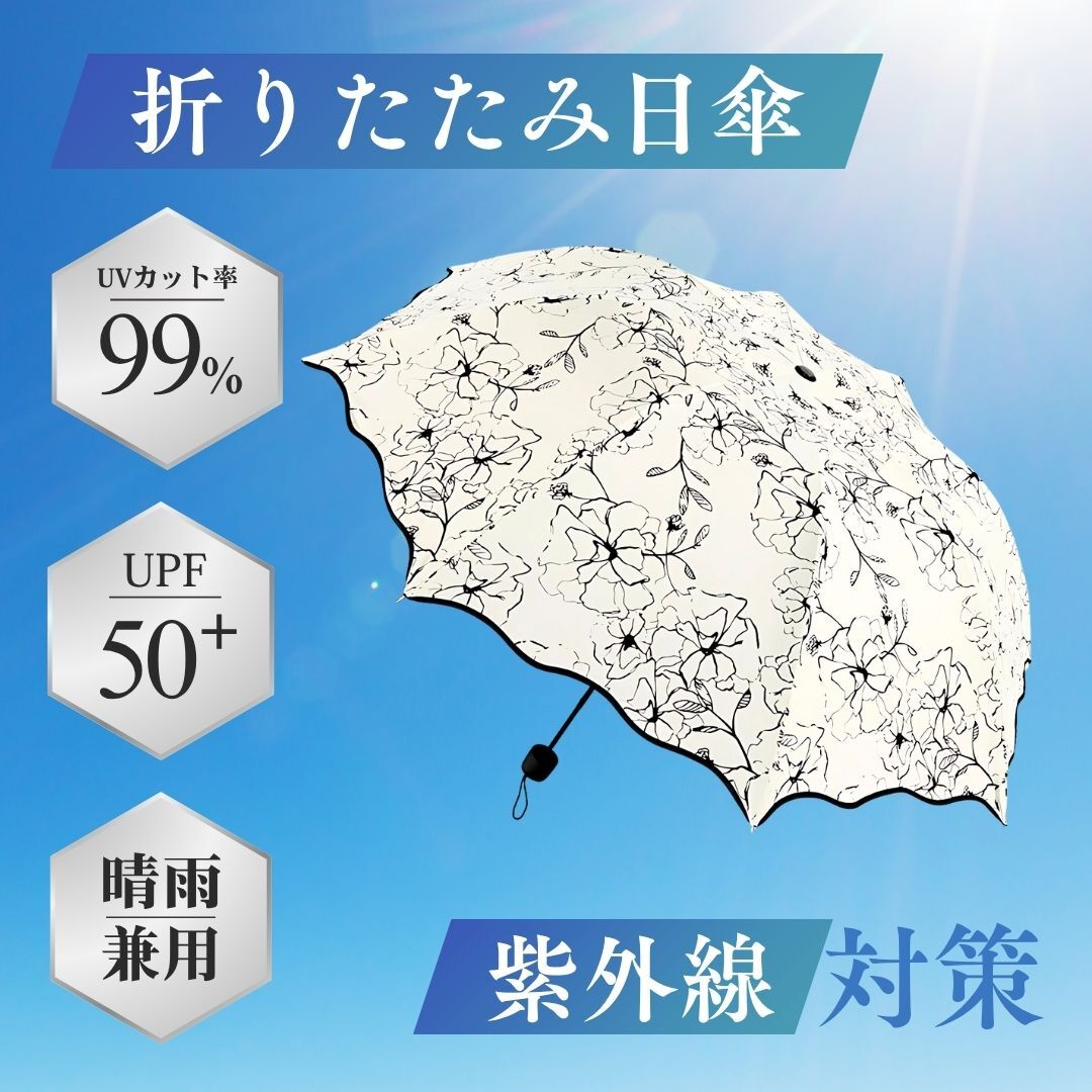 折りたたみ傘 日傘 晴雨兼用 コンパクト UVカット 熱中症対策 白 軽量 コンパクト 柄付き 雨具 日焼け対策 レディース