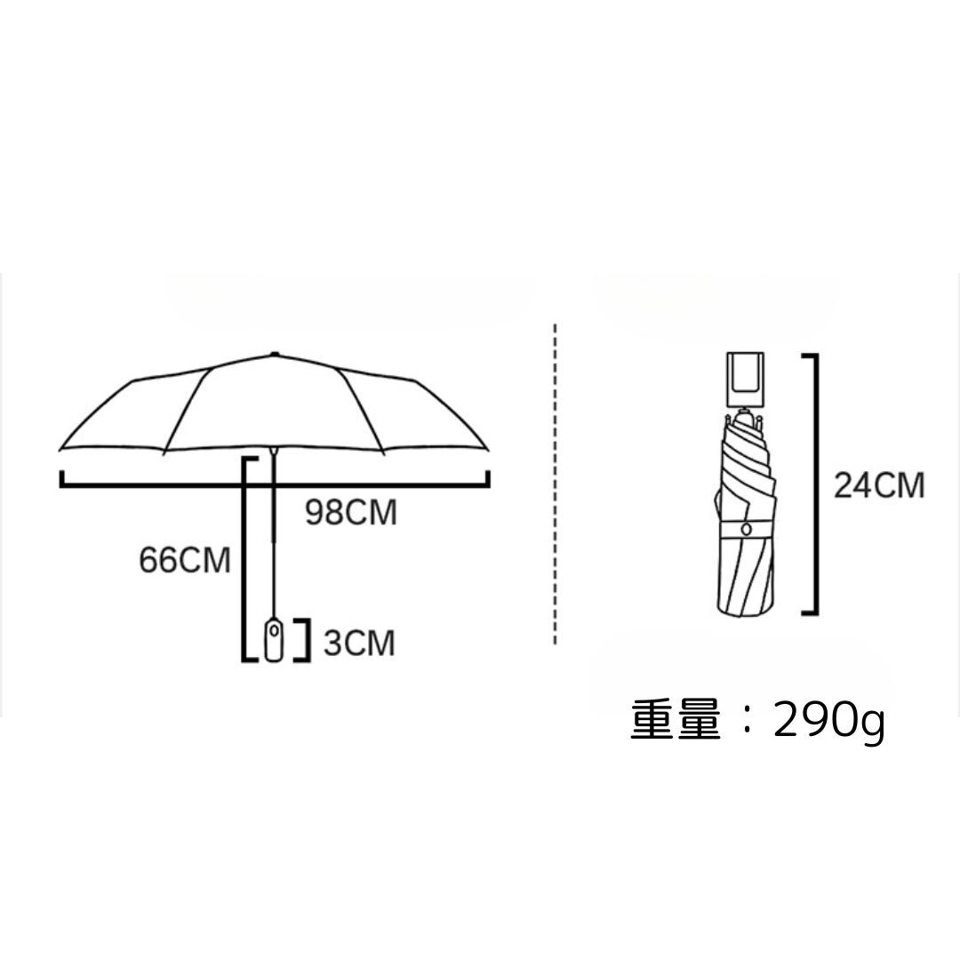 遮光率100%、UVカット率99.9%で、強い日差しからしっかり守ってくれる高機能な折りたたみ傘です。