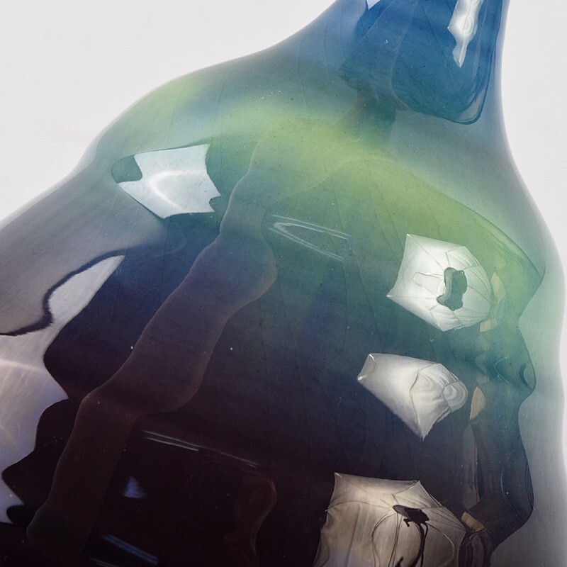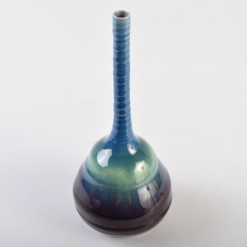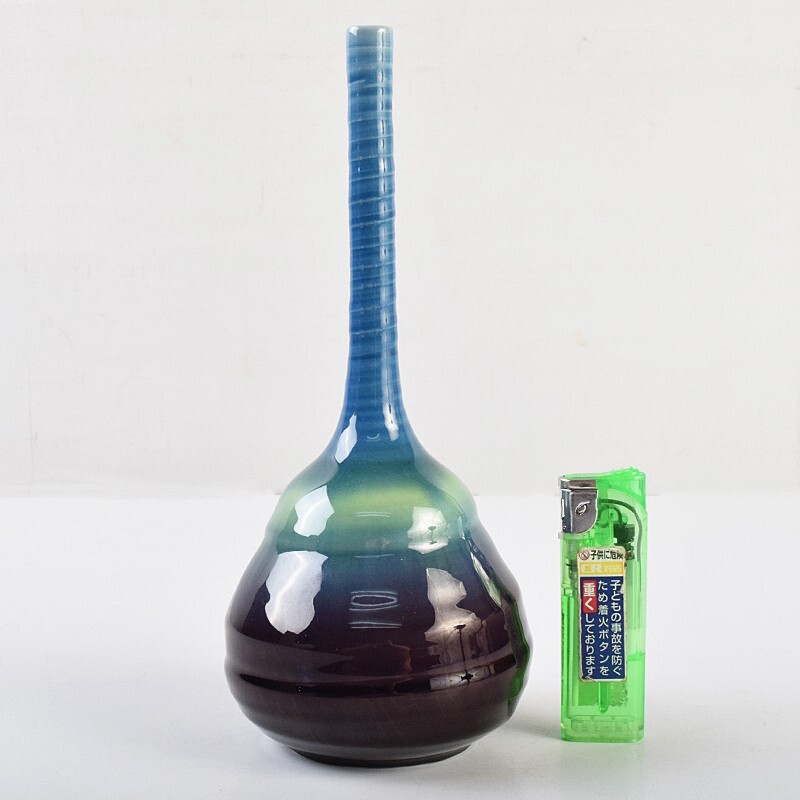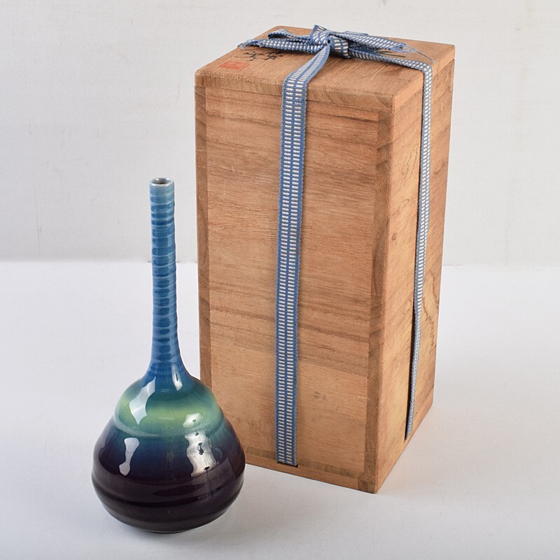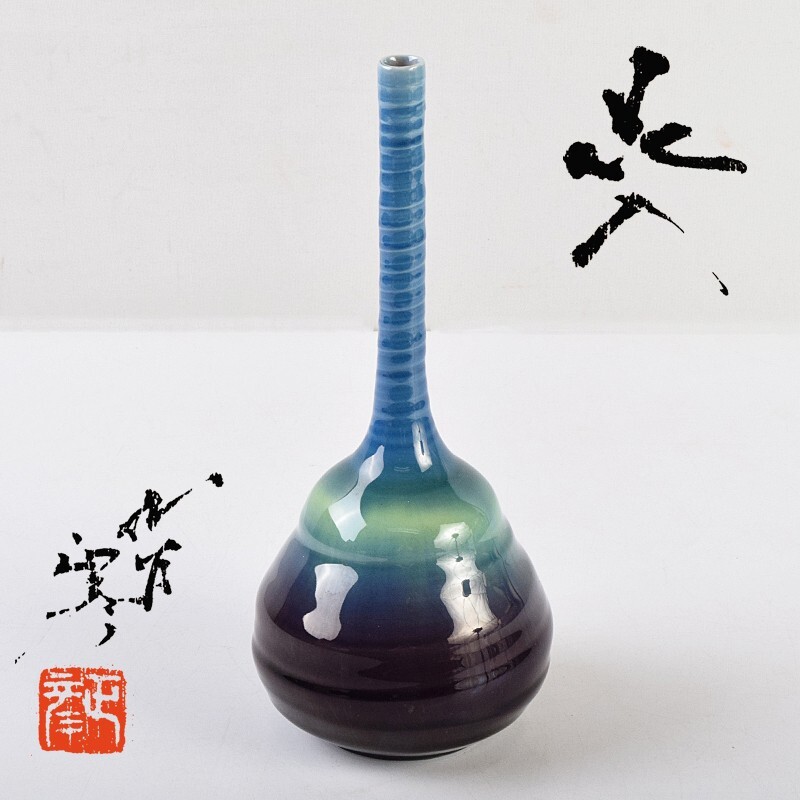 九谷焼 柳雨軒 三代八十吉 徳田正彦作 彩釉 花入 共箱 MAGT