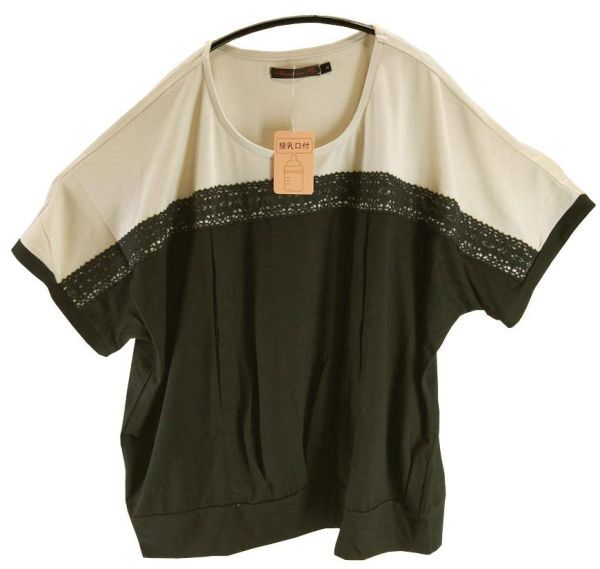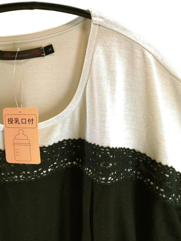 マタニティ カットソー 授乳口付きサイド スナップ付き 胸元レース付き サラッと感 産後対応授乳口付き |