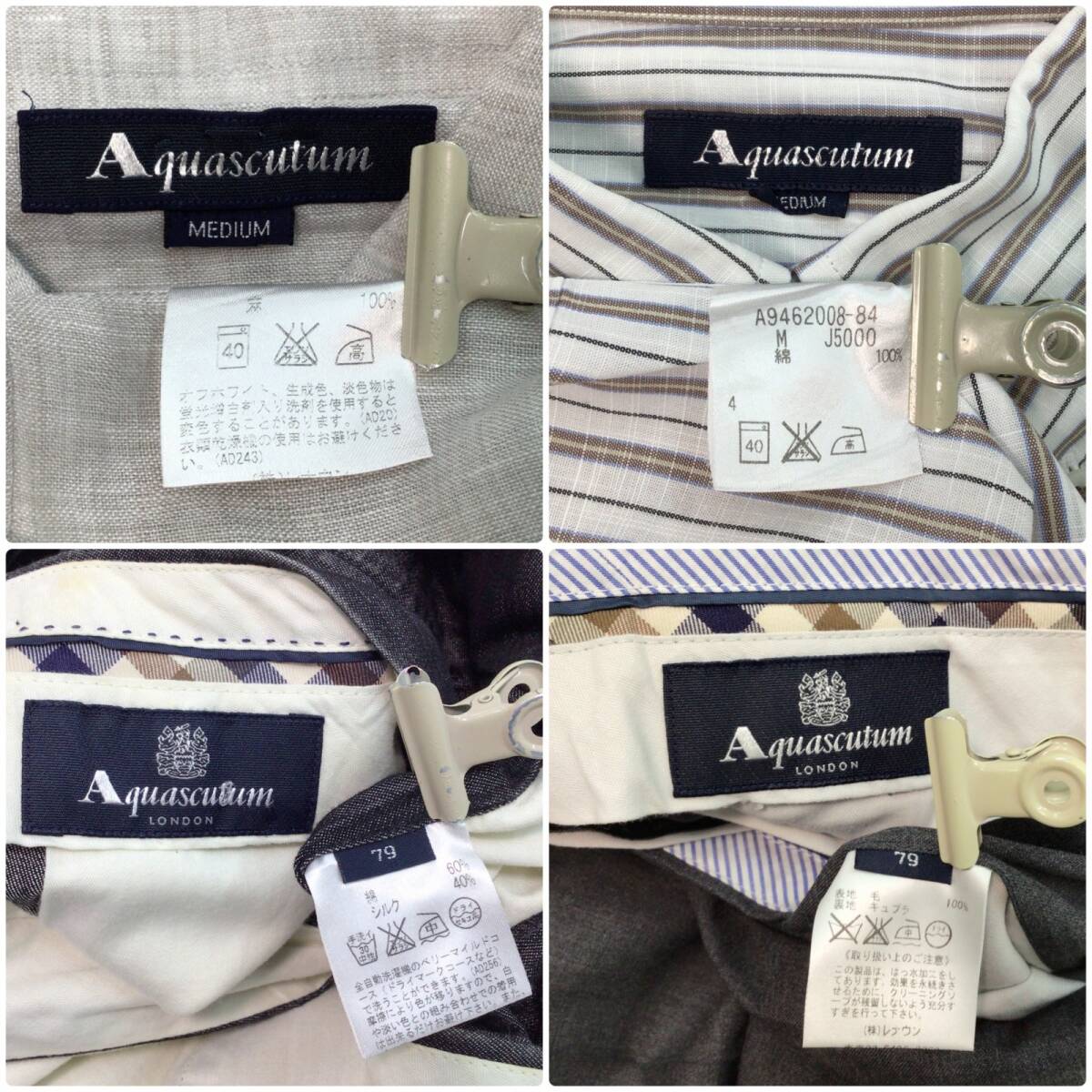■ Aquascutum アクアスキュータム メンズ 長袖シャツ ボトムス パンツ 4点 まとめ商品 サイズM, ウエスト79 ビジネスウエア 中古卸 1.22kg