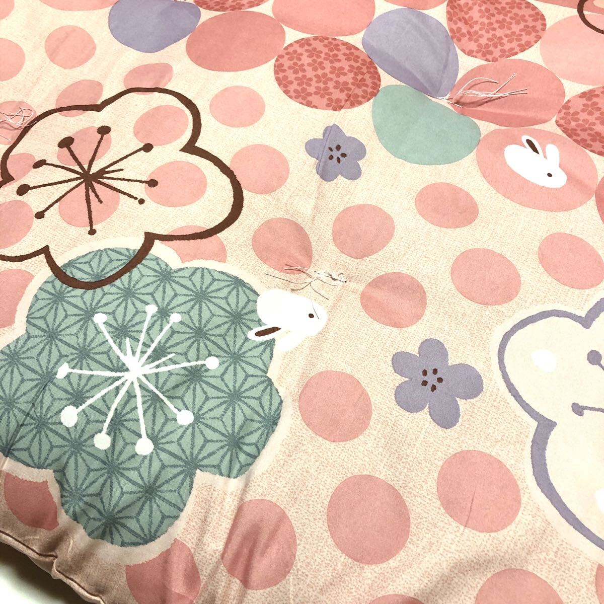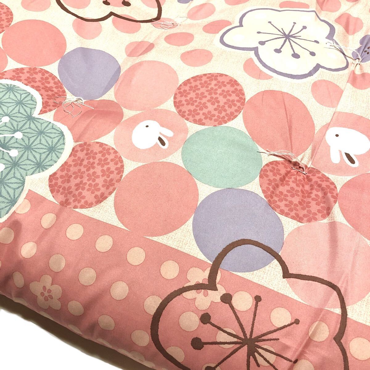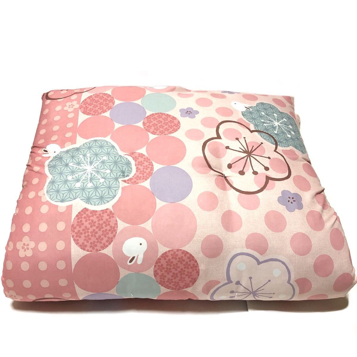 ■新品■うさぎ・梅 長座布団■かわいい・華やか・ピンク系・120cm×68cm・ふとん