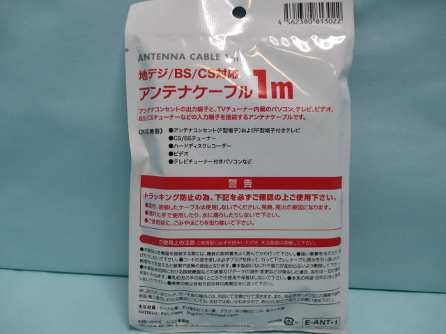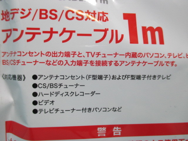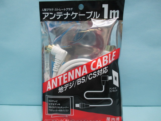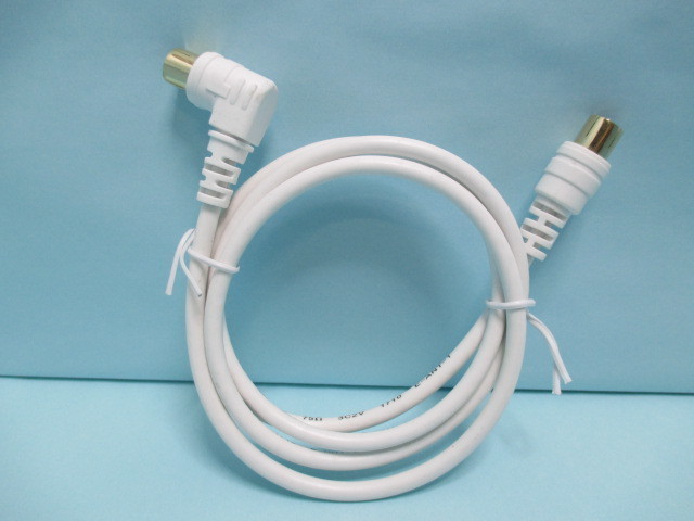 送料無料【未使用品】テレビ アンテナケーブル 1m 白 L型プラグ×ストレートプラグ 金メッキ ホワイト 同軸ケーブル■地デジ/BS/CS対応