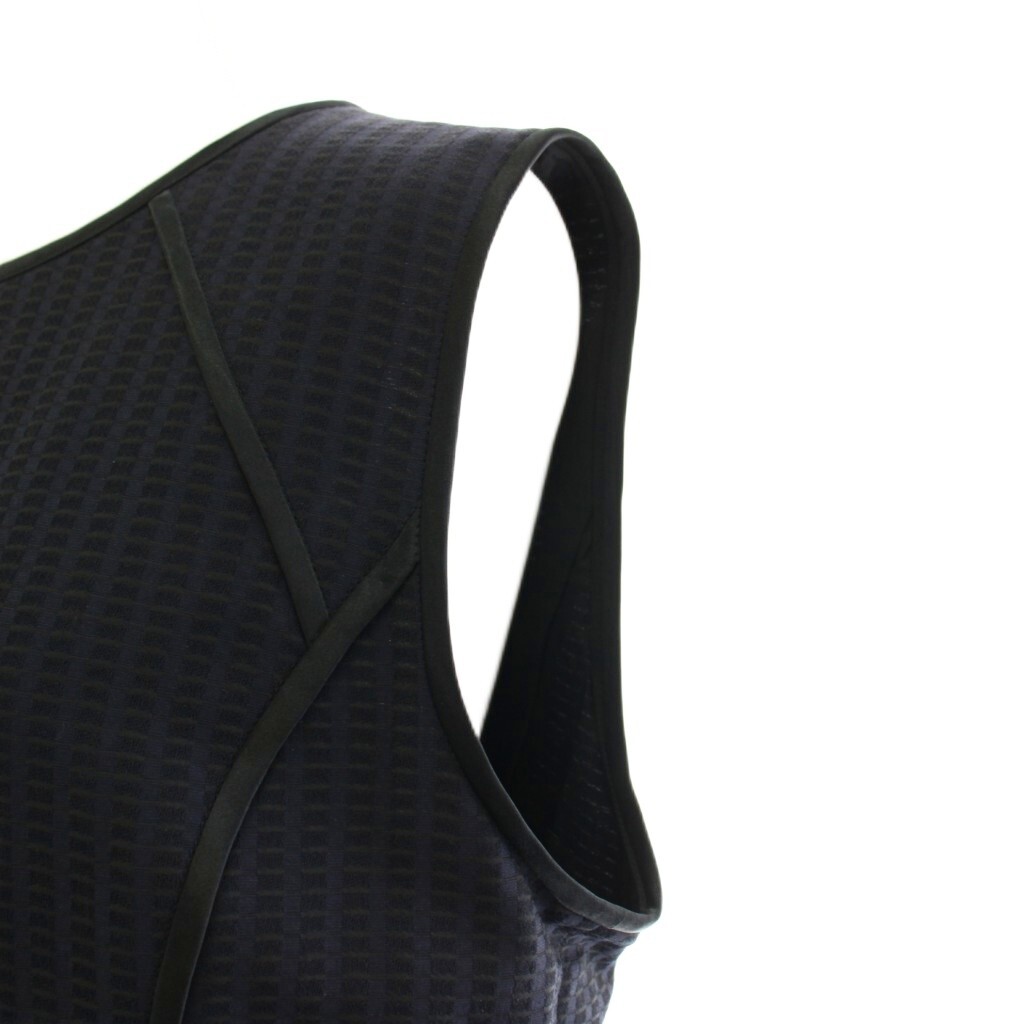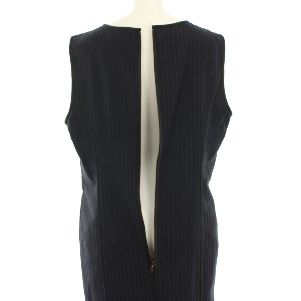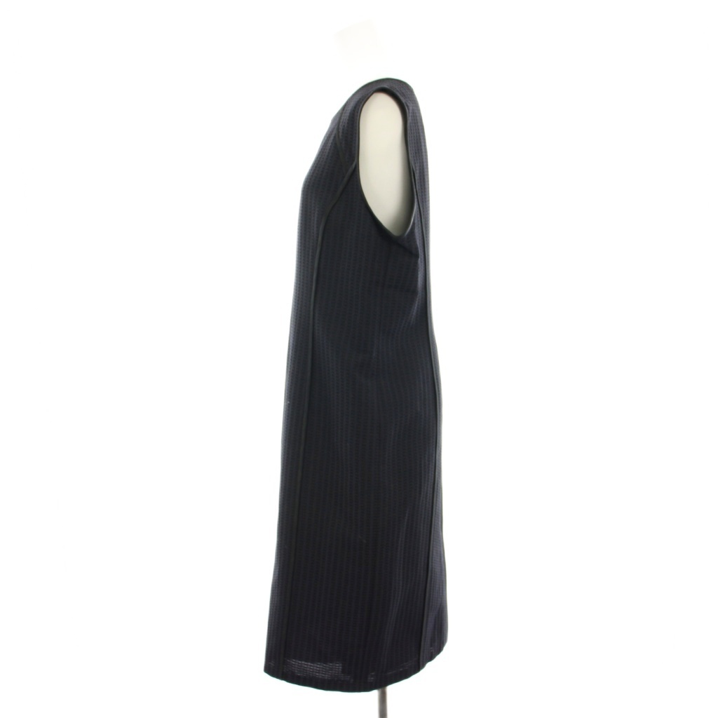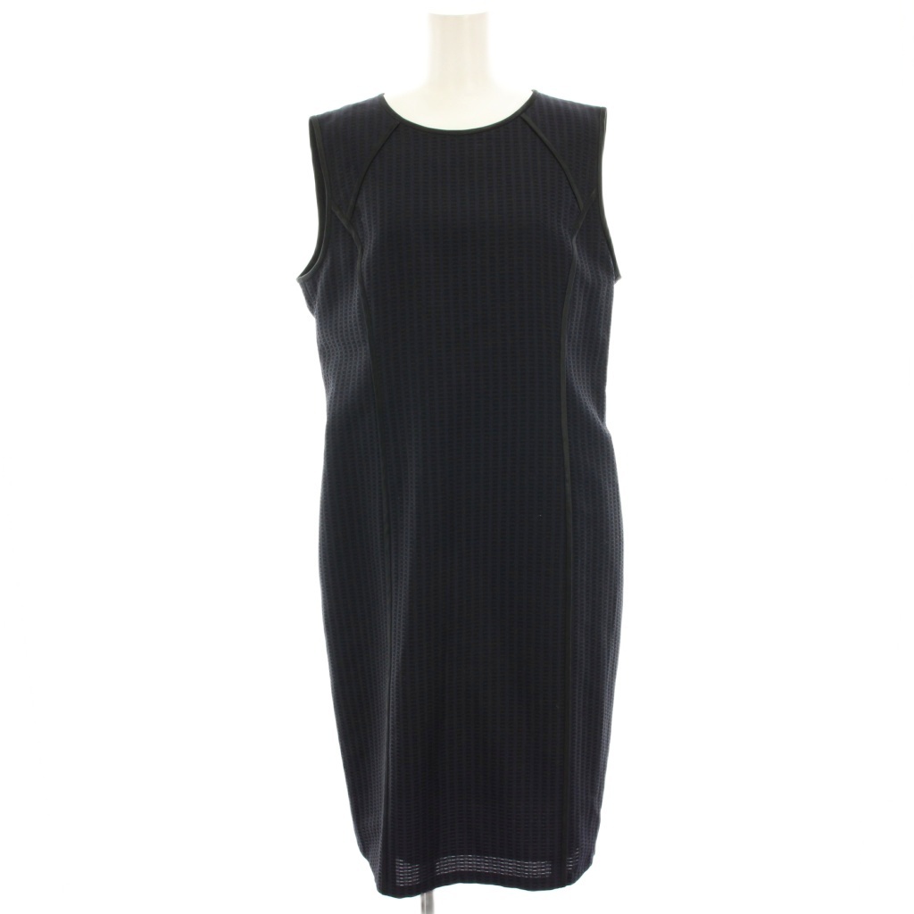 ランバン LANVIN COLLECTION ワンピース ノースリーブ パイピング ひざ丈 ウール混 総柄 42 紺 ネイビー 黒 ブラック 2561335
