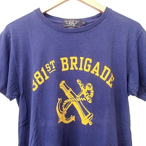 ダブルアールエル RRL ラルフローレン Tシャツ 半袖 カットソー アンカー ロゴ プリント S 紺 ネイビー ☆AA★ A0818 メンズ