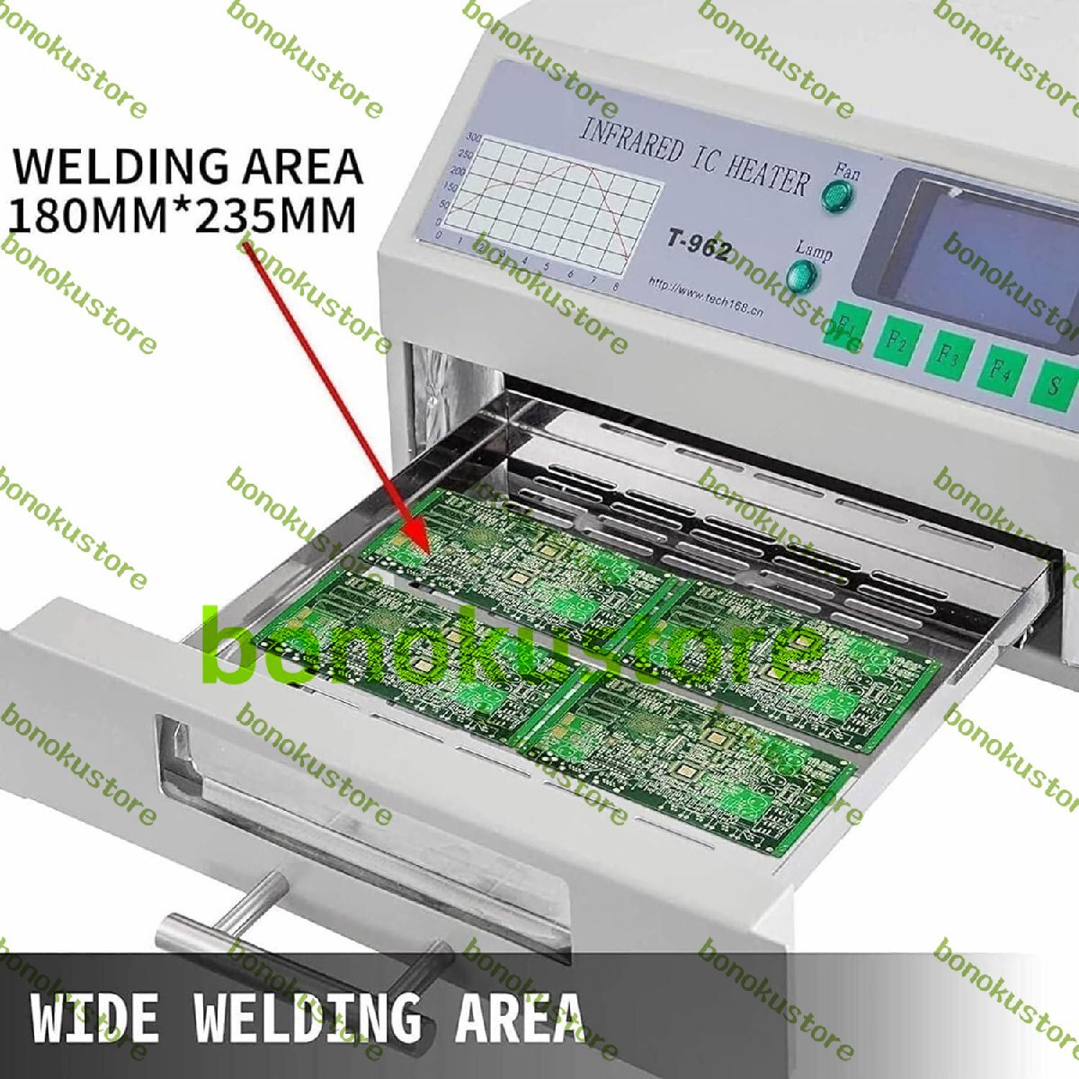 【広い溶接面積】: 溶接炉、溶接面積: T-962 (180*235mm)、T-962A (300*320mm)、T-962C (400*600mm)、T-962A+ (450*370mm)